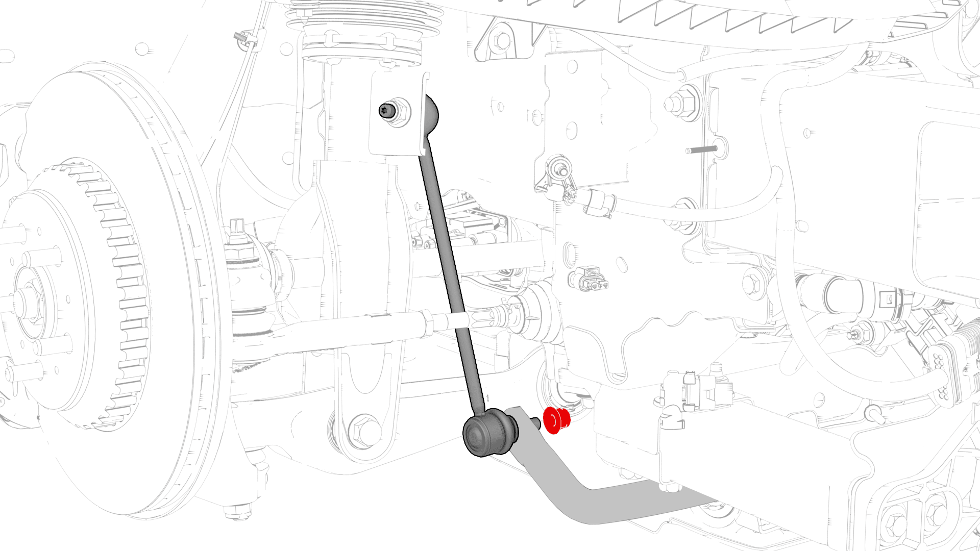 - 拆下并弃用将 LH 前平衡杆固定到前平衡连杆的螺母,然后将前平衡连杆置于一旁。