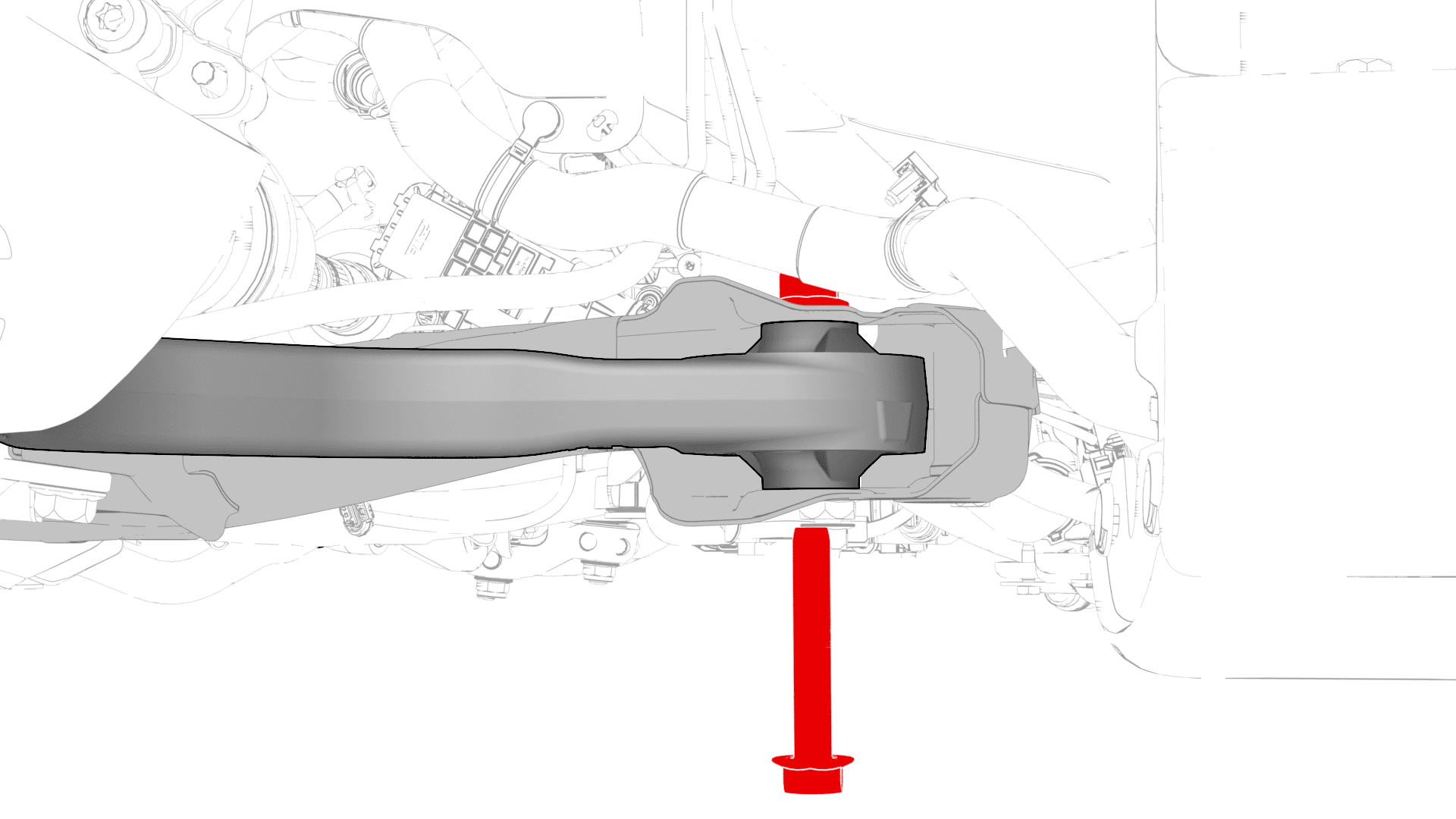 - 拆下并弃用将前副框架后部固定到车身的大号螺栓。