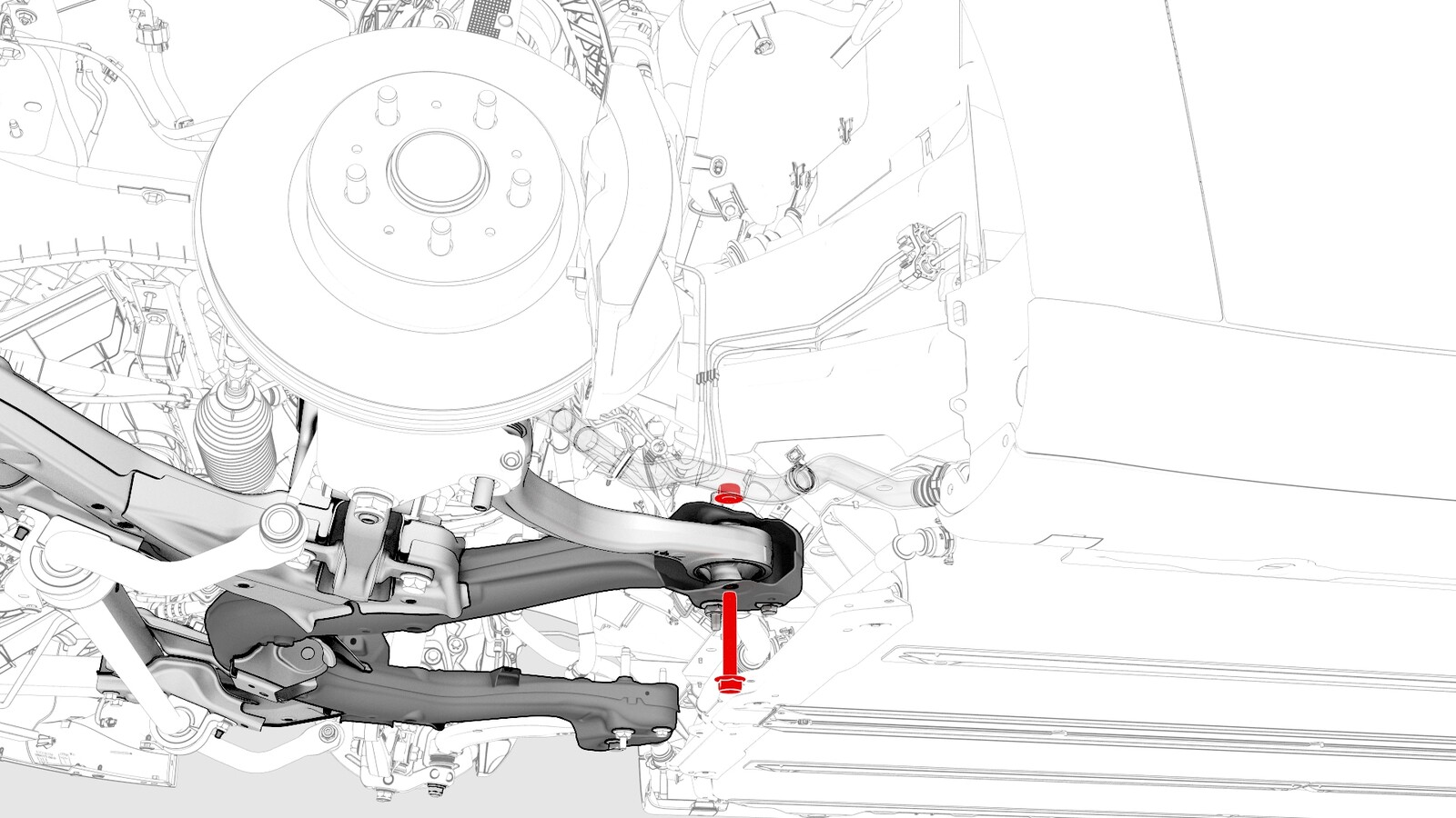 紧固将连杆固定到前副车架的螺栓和螺母。