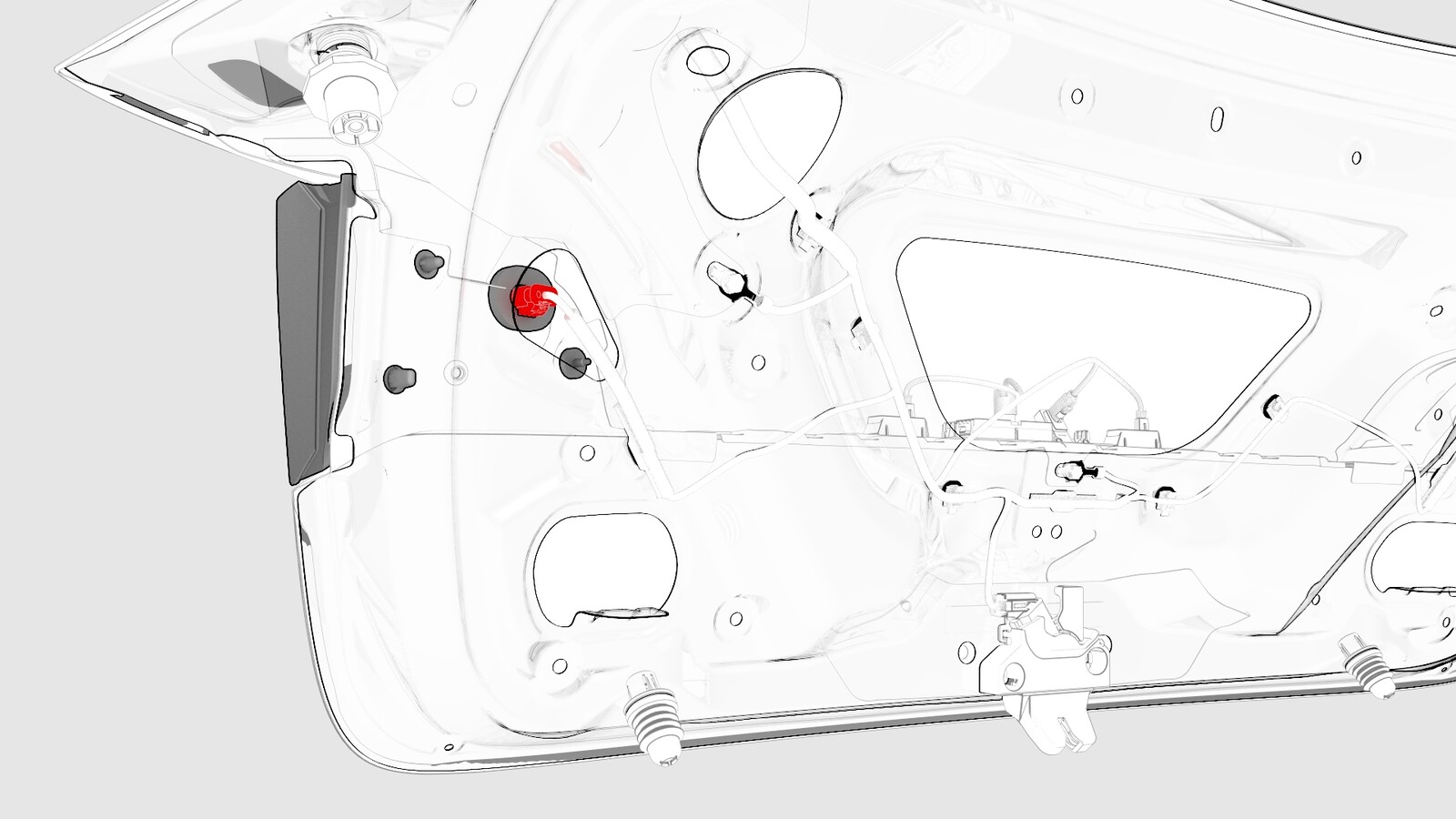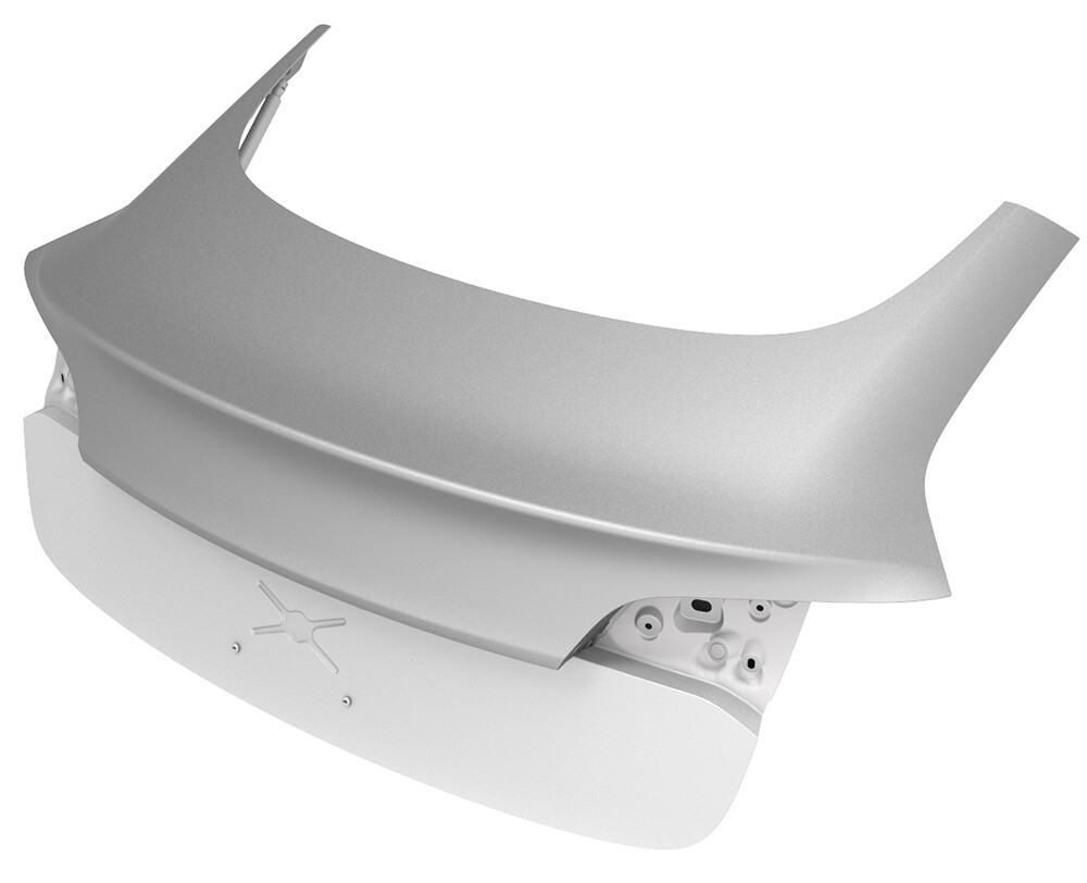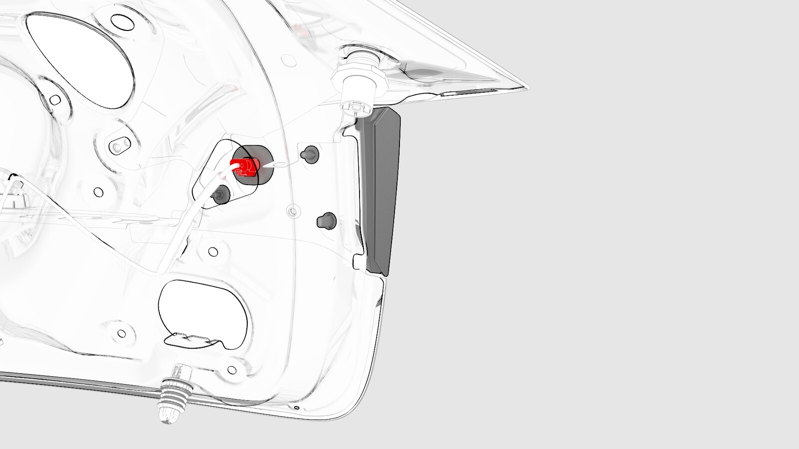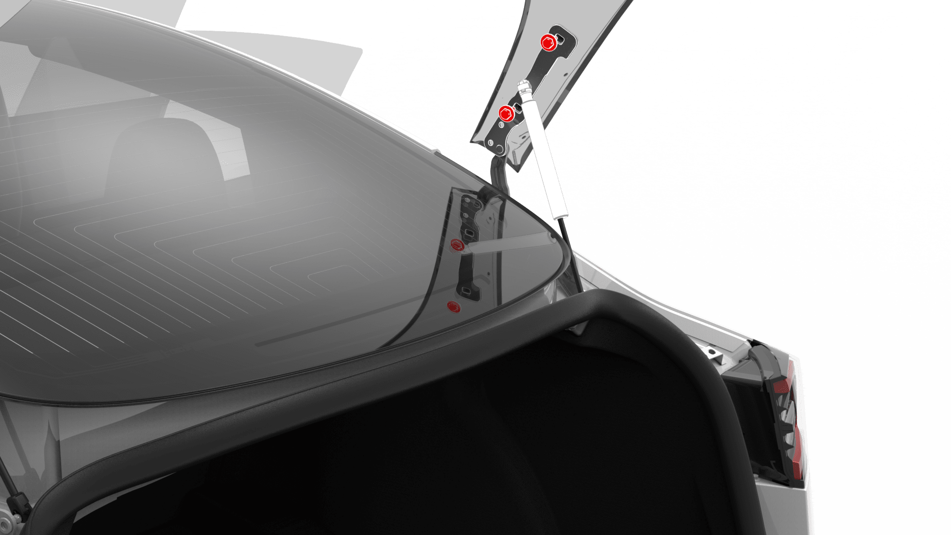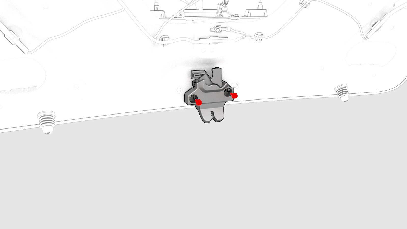 - 在助手的帮助下,将行李箱盖放置在行李箱铰链上,并与之对齐,然后手动拧紧将铰链固定到行李箱盖的螺栓。