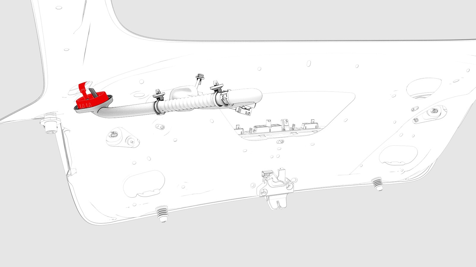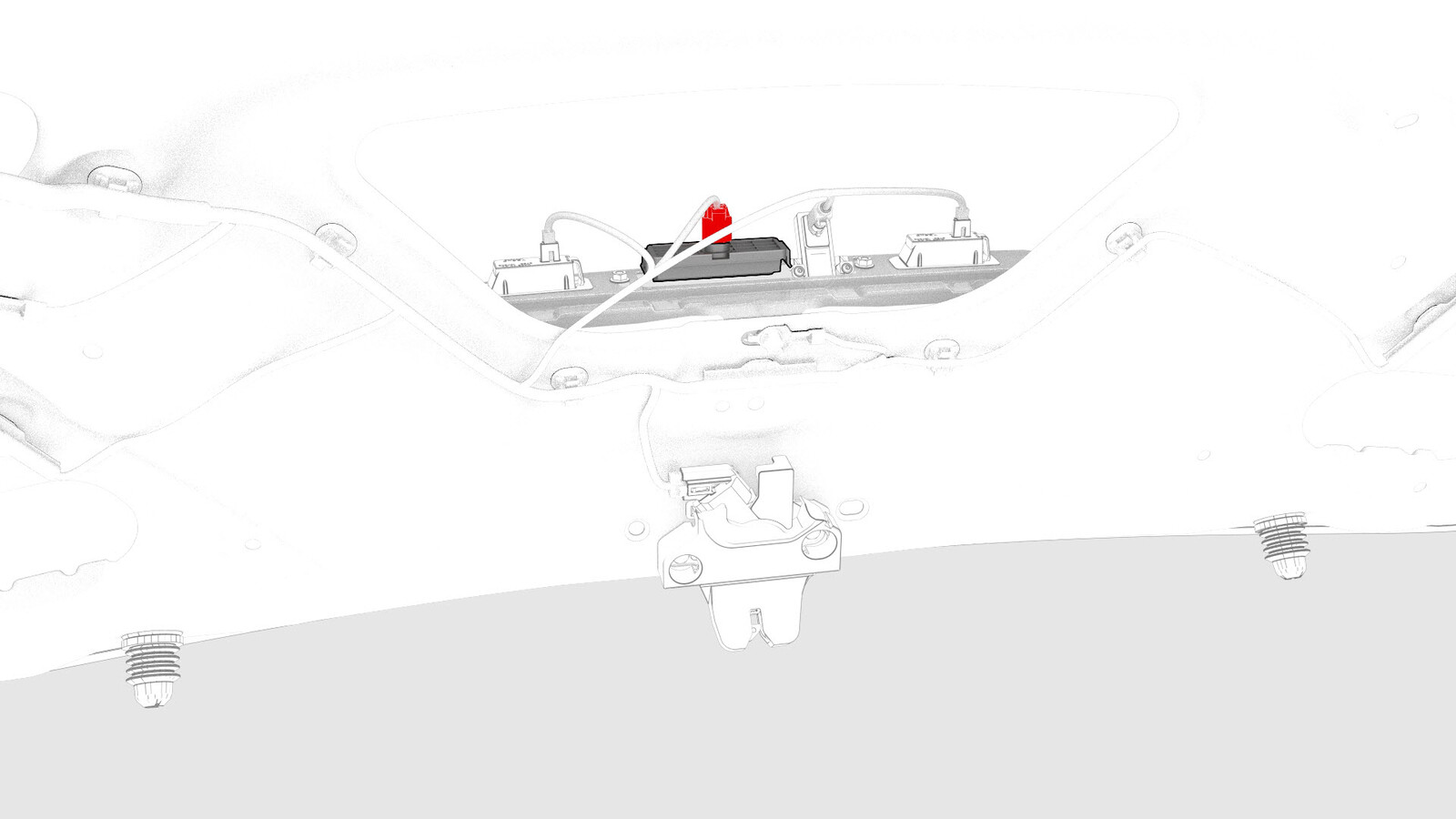 - 将行李箱线束推过行李箱隔板,并推出行李箱盖。