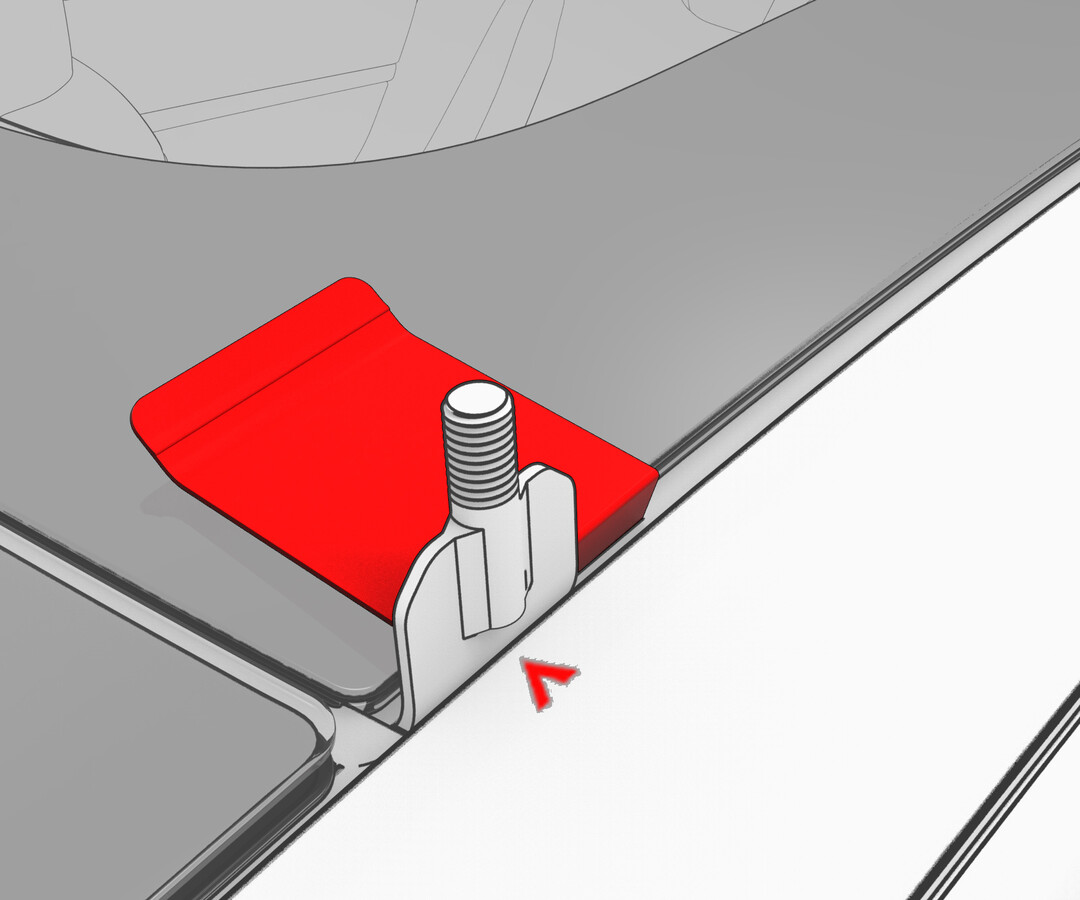 在车辆的所有角落安装车顶行李架纵梁夹和垫片: