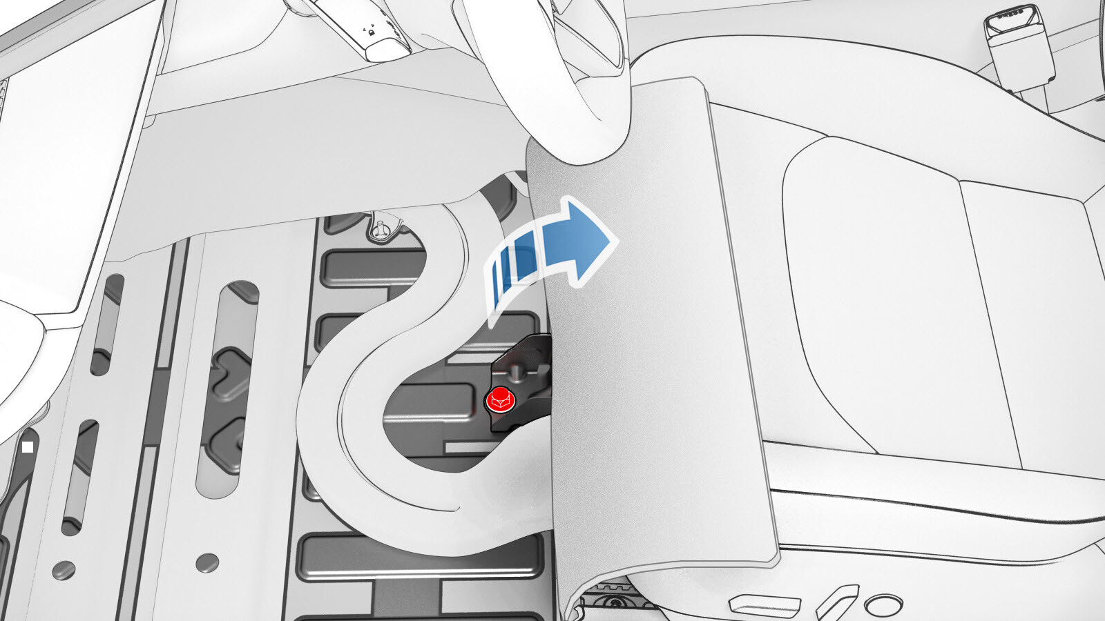 - 如果车辆有第 3 个或第 4 个高压电池内部左侧螺栓,则将驾驶位座椅移到中间位置,立起座椅靠背。否则,请转至下一步。