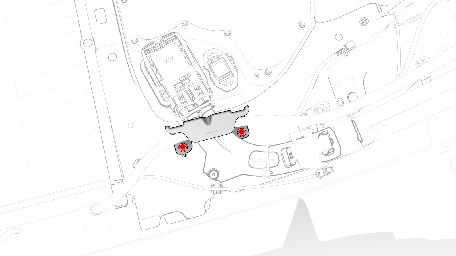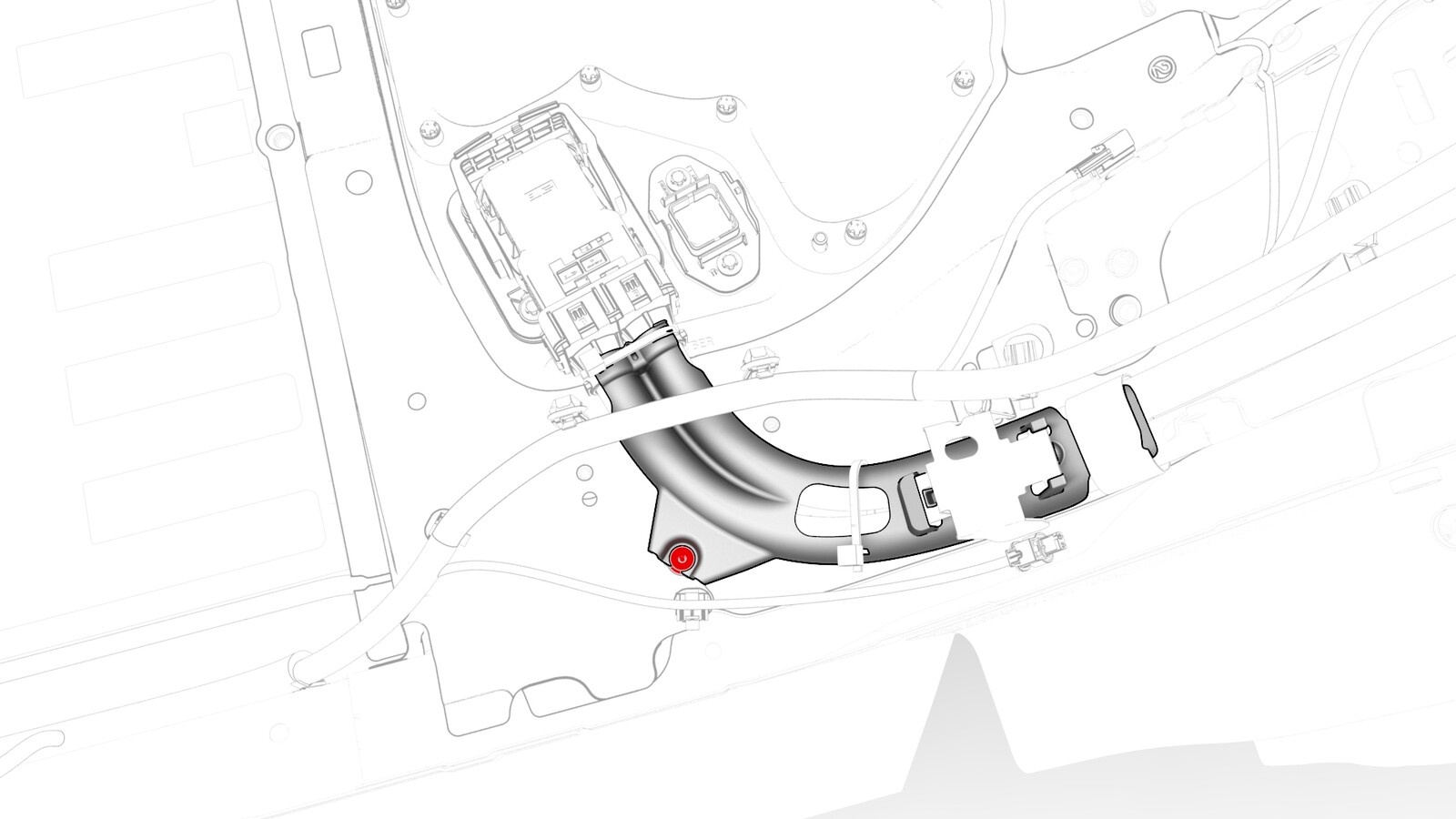 - 拆下将充电接口固定到高压电池仓处高压电池线束支架的螺栓。