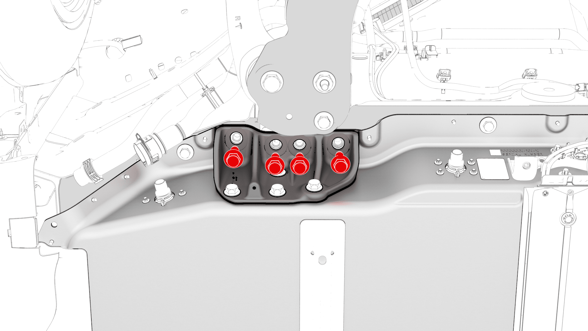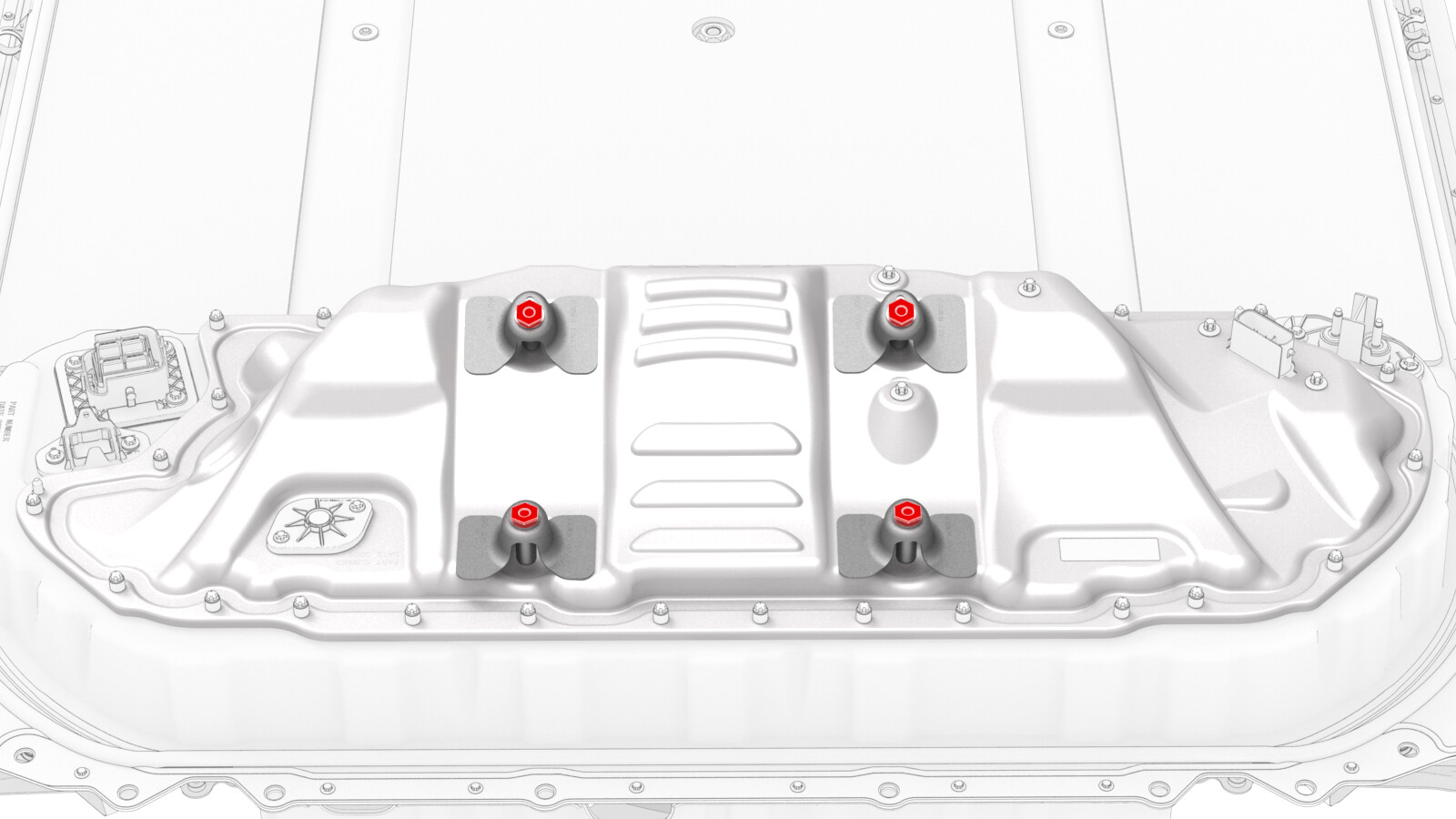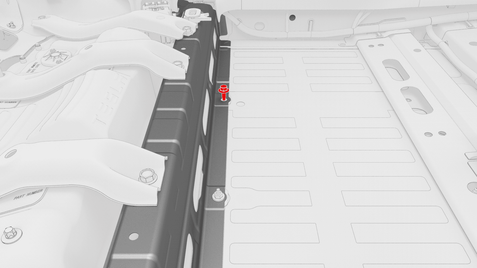 - 拆下将高压电池固定到车身的第 4 个内部右侧螺栓(如有配备)。否则,请转至下一步。