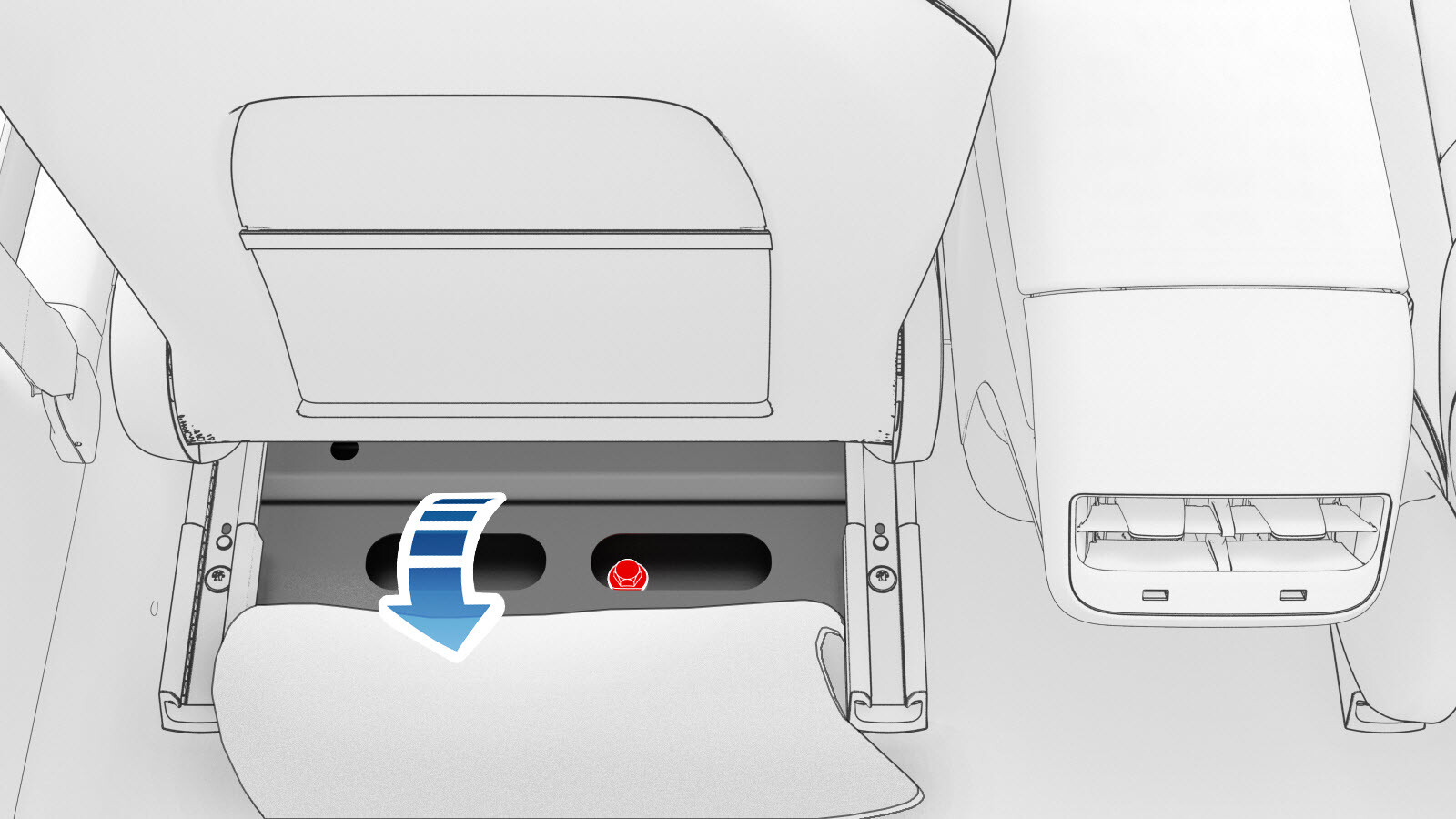 如果有第 3 个和第 4 个高压电池内部右侧螺栓,则将副驾位座椅移到中间位置,立起座椅靠背。