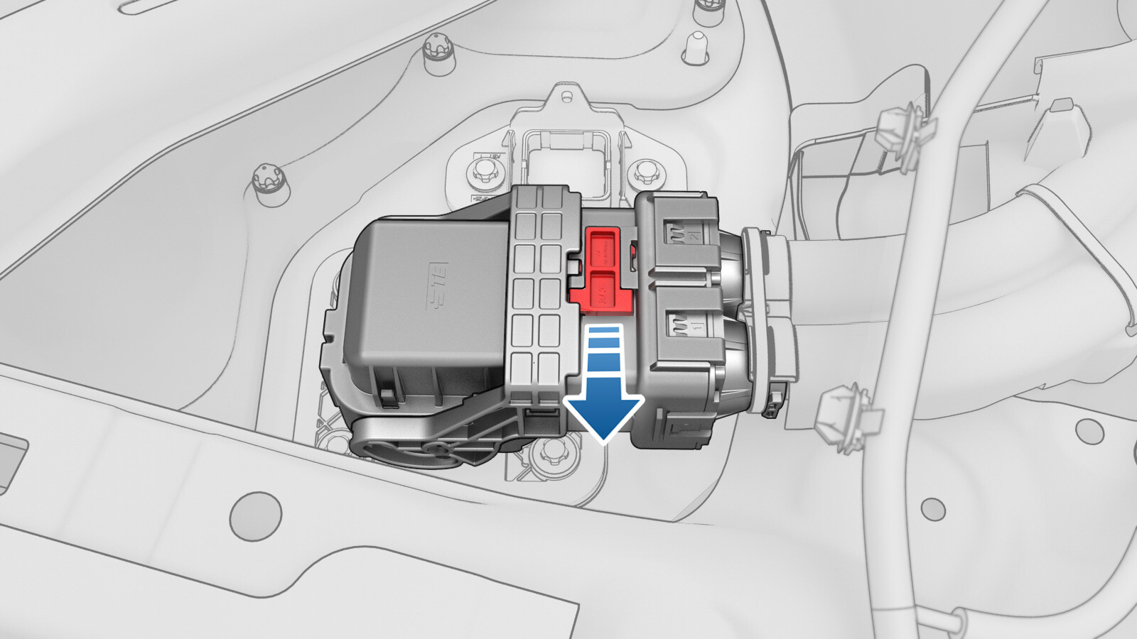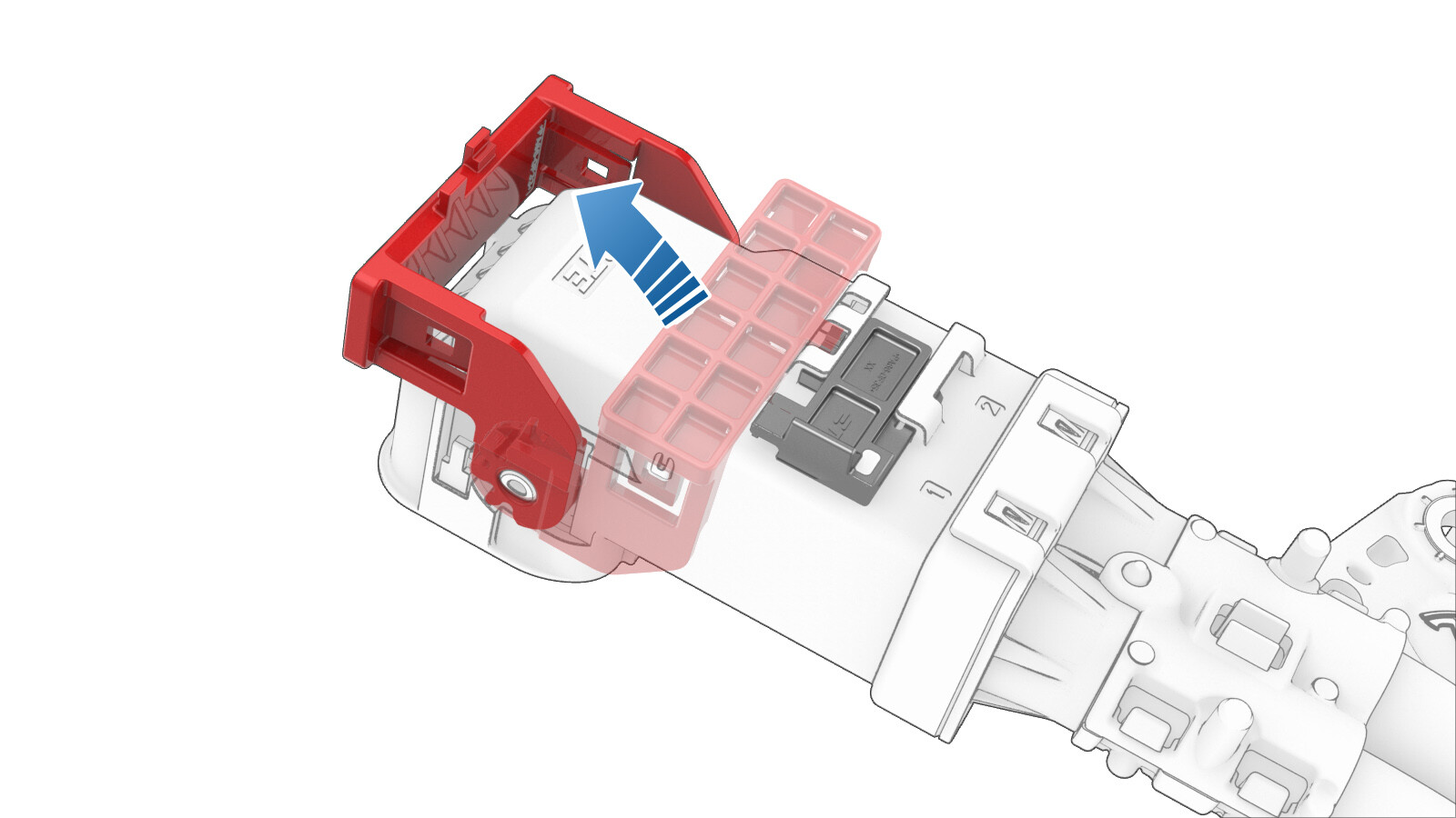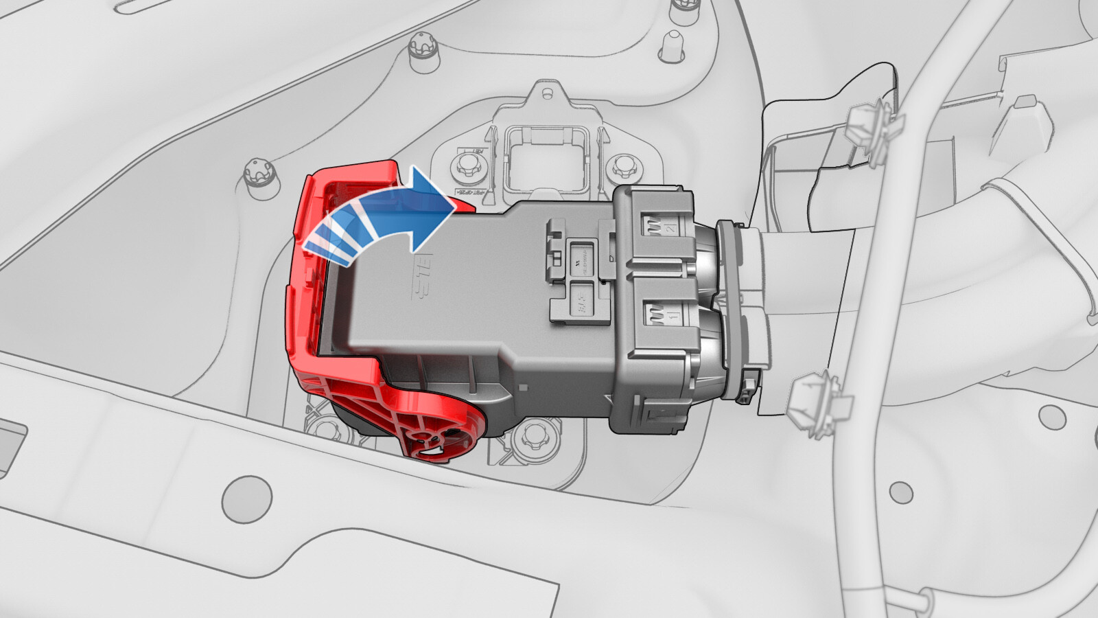 - 滑动释放装置,将充电接口至高压电池线束的三相连接器把手从固定位置解锁。