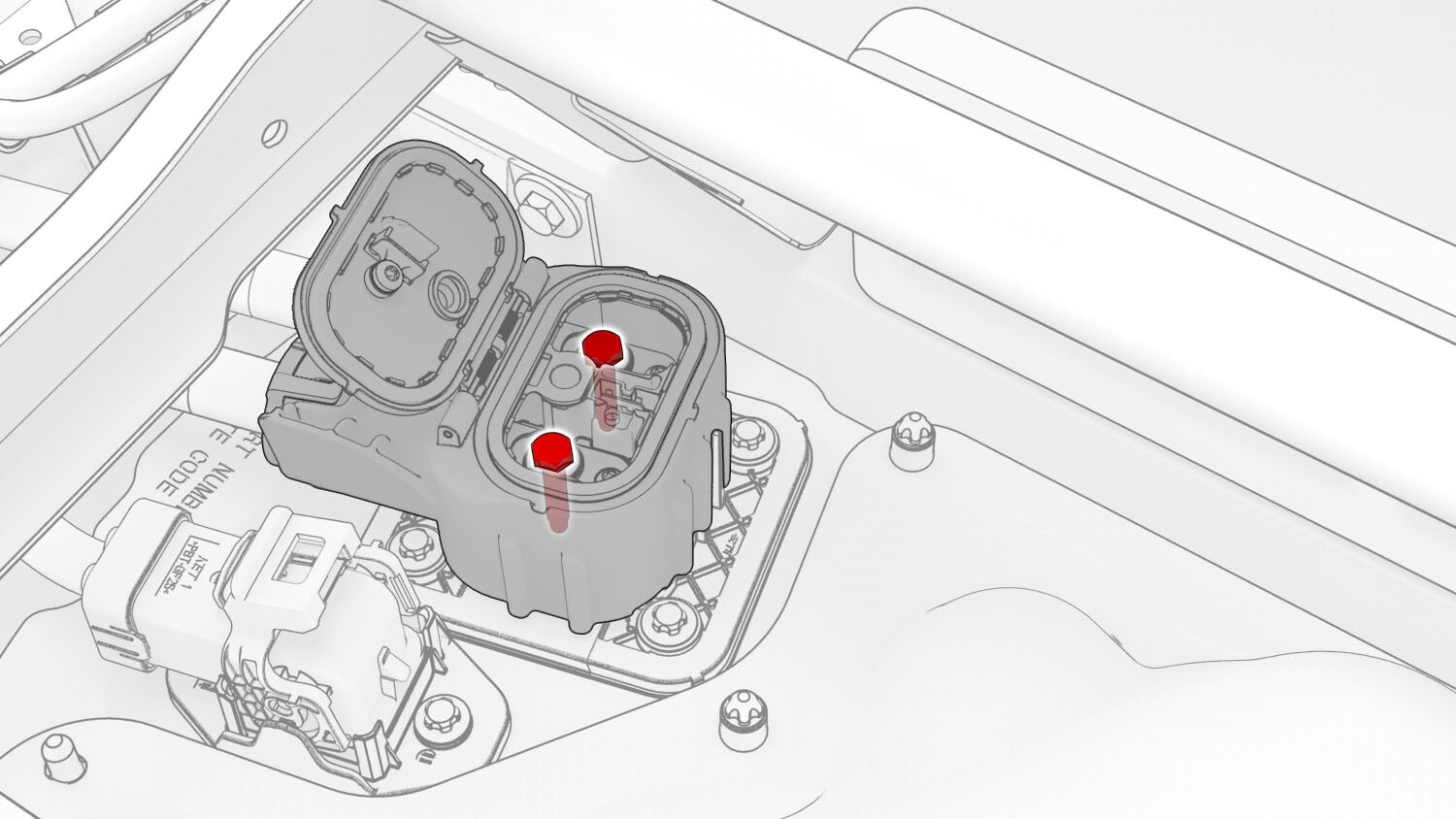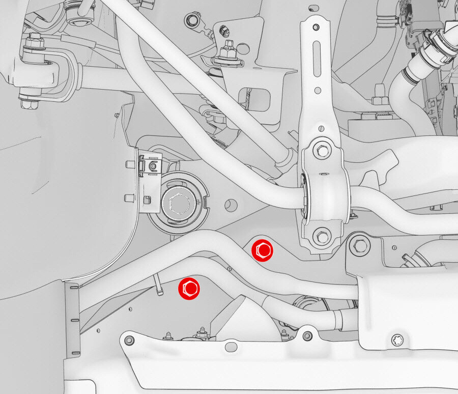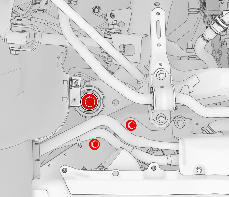 - 检查是否有第 3 个右侧螺栓。 必要时,使用手电筒。拆下螺栓(如有)。否则,请转至下一步。