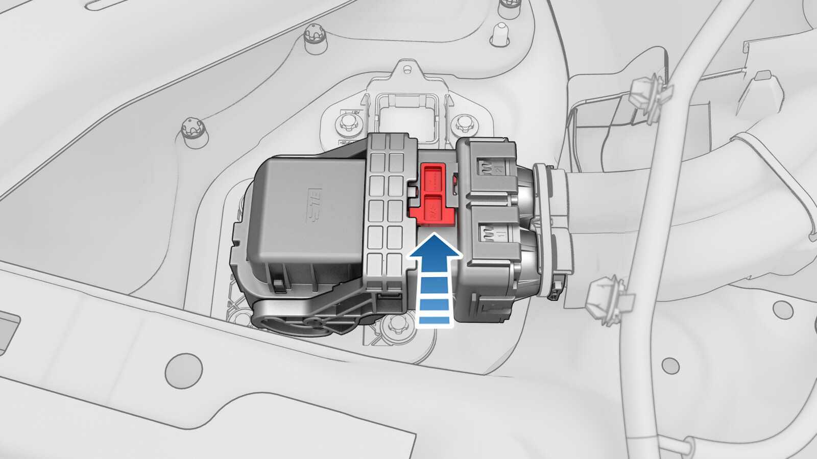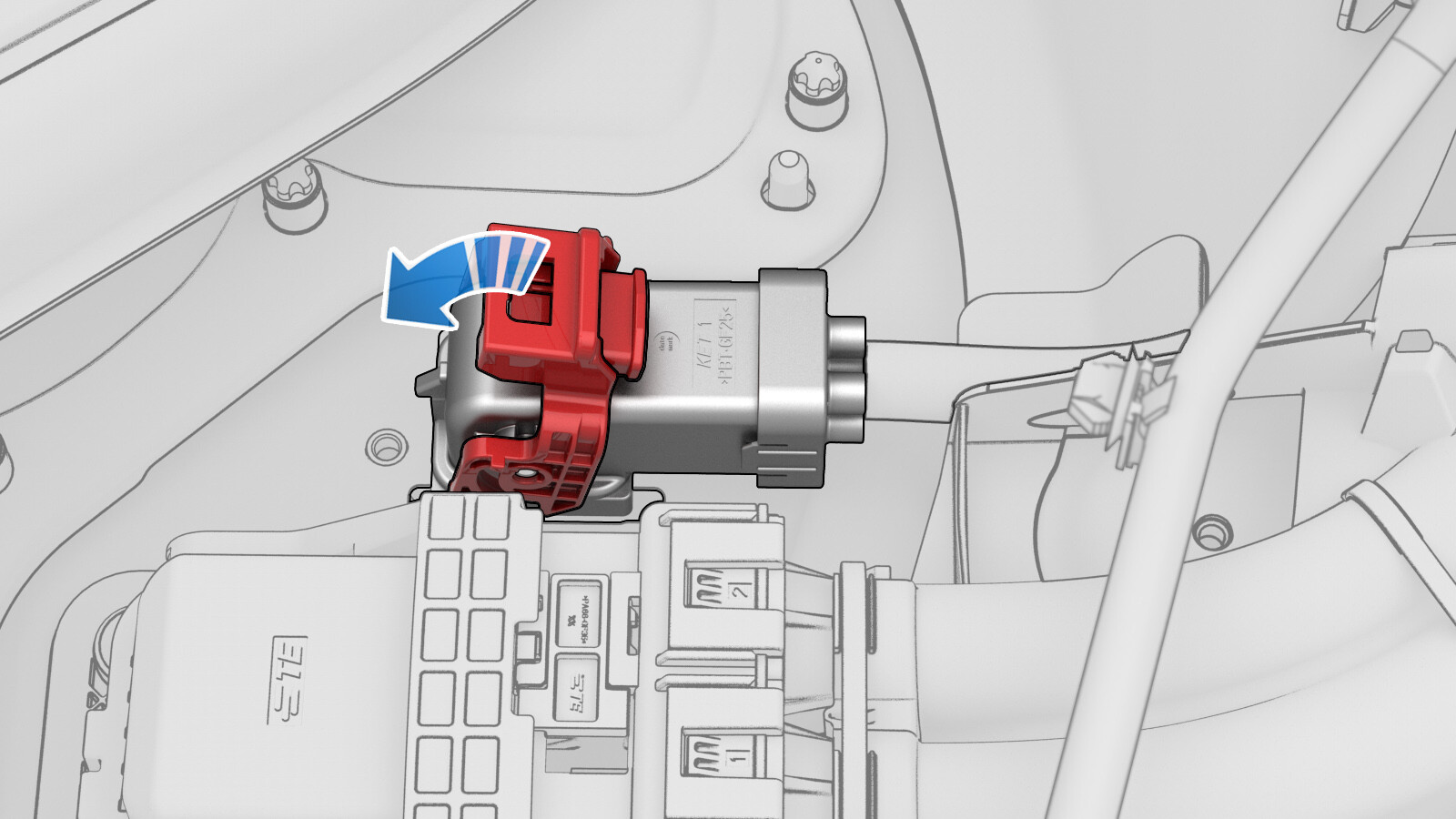 - 将充电接口至高压电池线束的三相连接器把手抬至最高处。