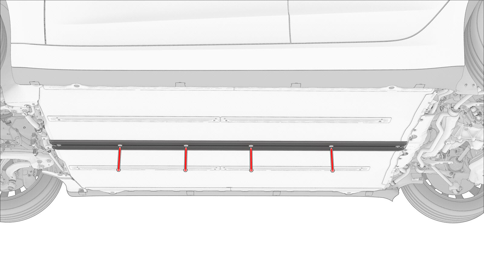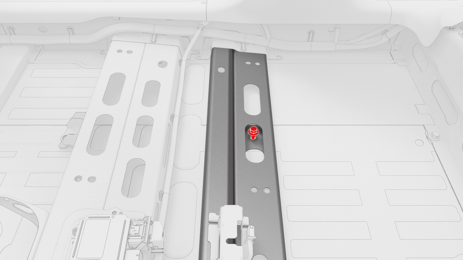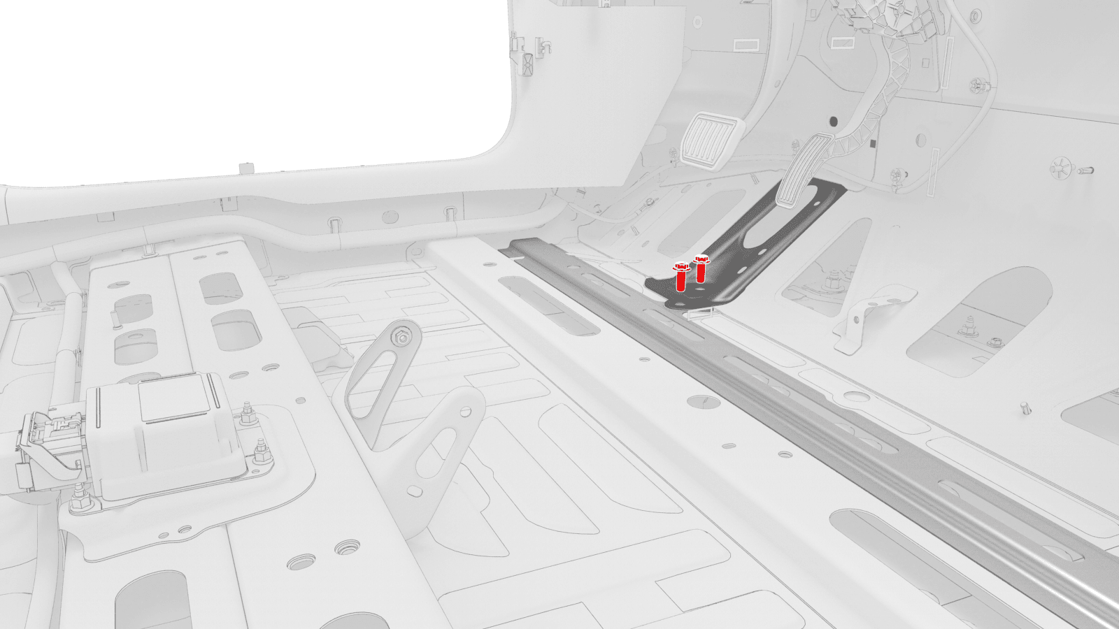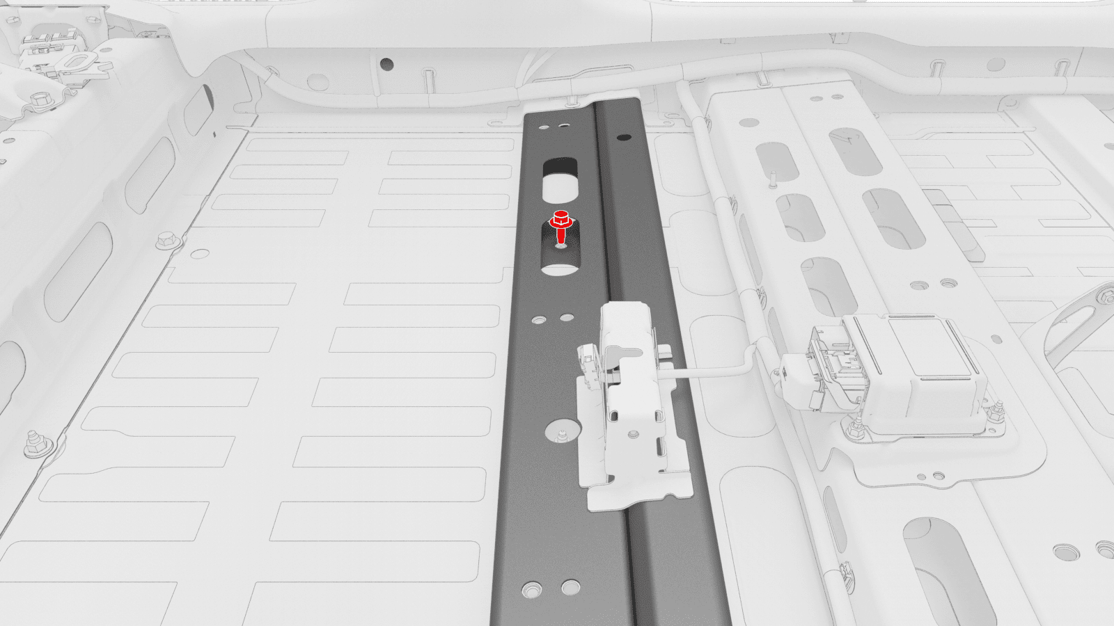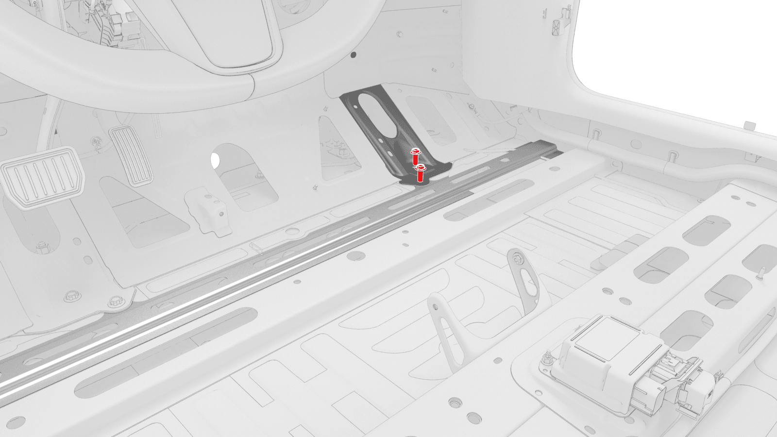 安装将第二排内侧左右纵梁固定到高压电池仓盖板的螺栓。