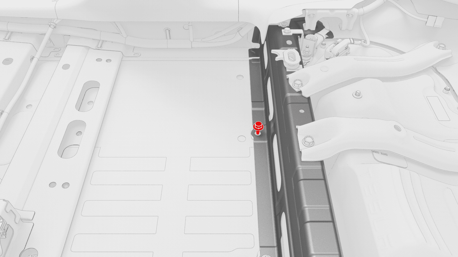 - 提起后地毯右侧,伸手触摸,确认是否有第 4 个高压电池右侧螺栓。如果有,则将螺栓拆下。