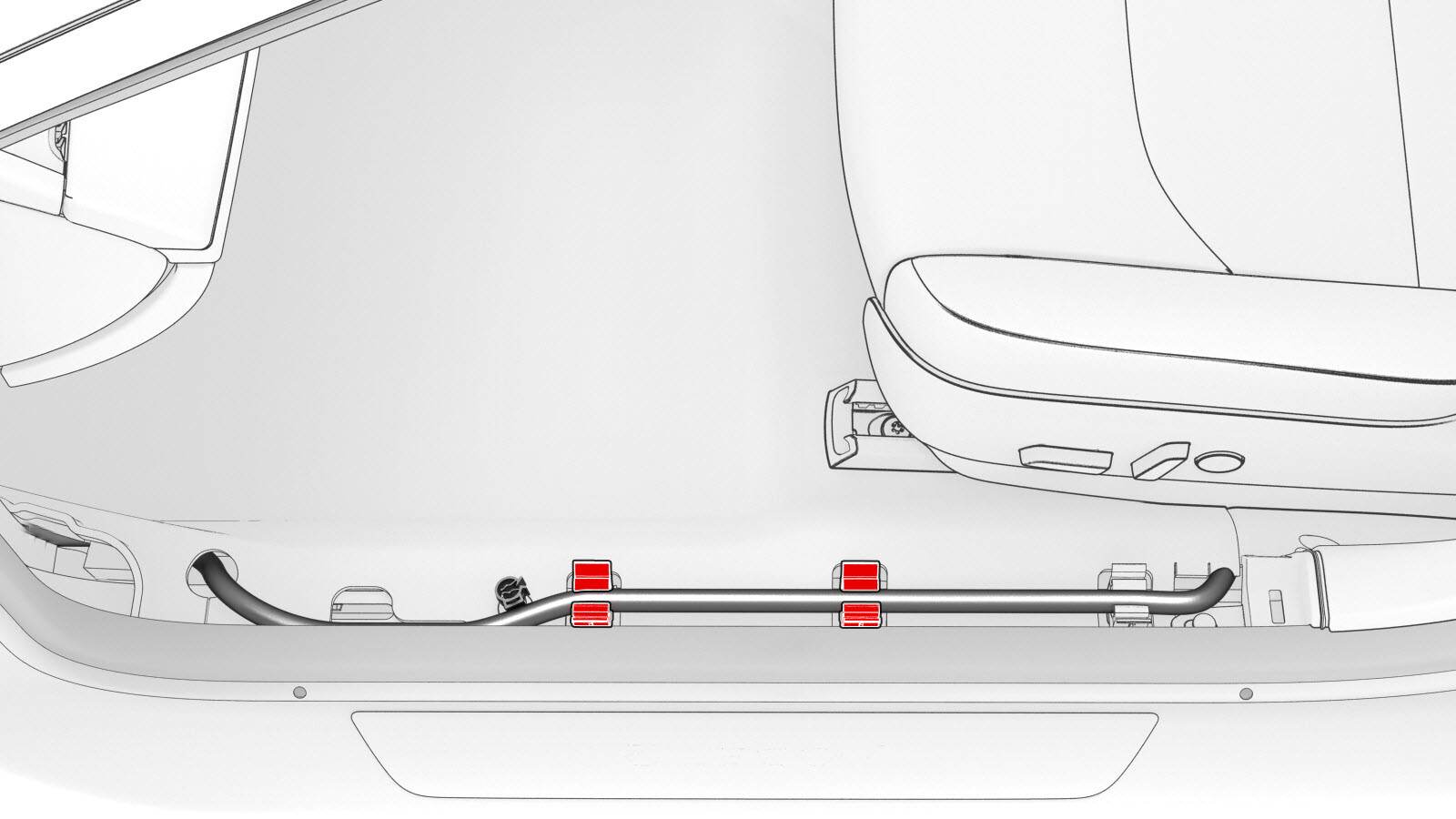 136 Nm (100.3 lbs-ft) - 将右前主地毯展开回原位;向下移动前部边缘,然后将地毯滑回,以便定位。将座椅电气线束安装到夹子上。