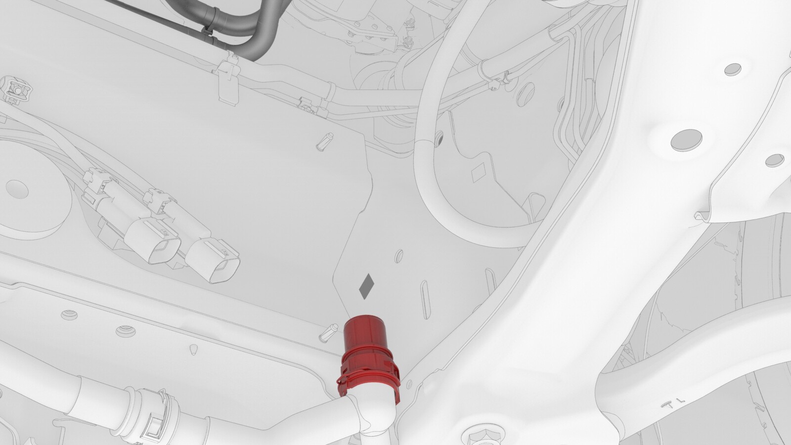 - 完全升起车辆,然后在高压电池 LH 前侧的下方放置一个冷却液排放容器。