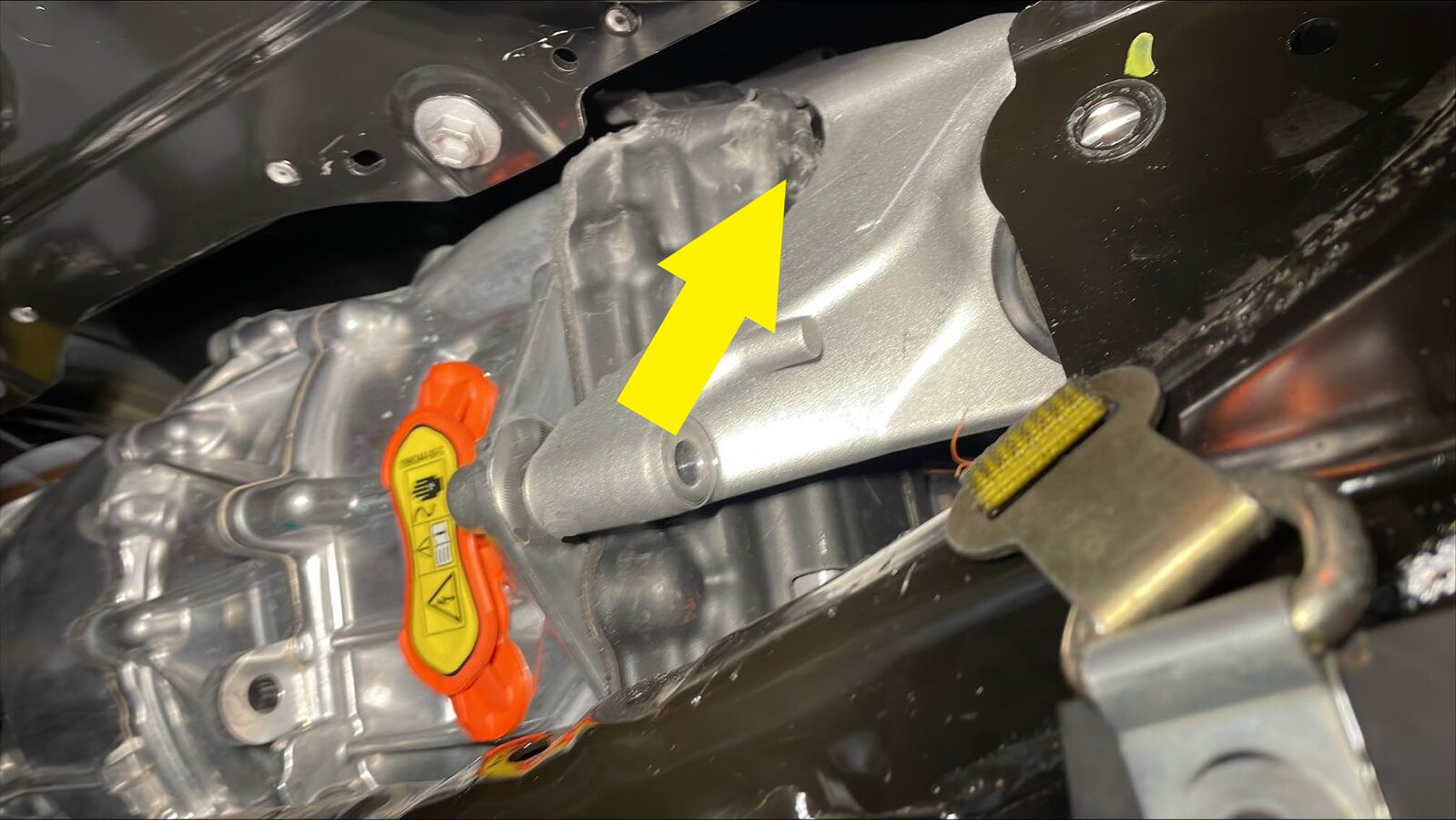 - Remove the small bolts (x2) that attach the RH shear plate to the HV battery.