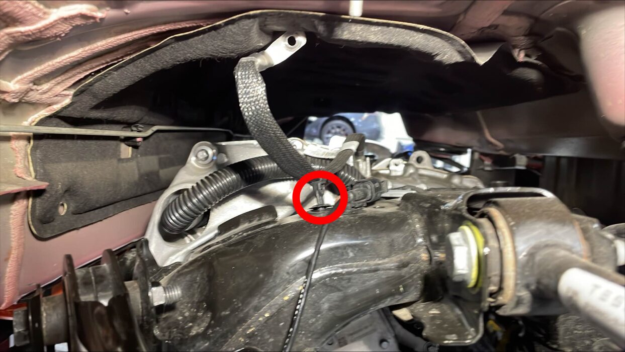 - Release the clip that attaches the rear subframe harness to the body on the LH side.
