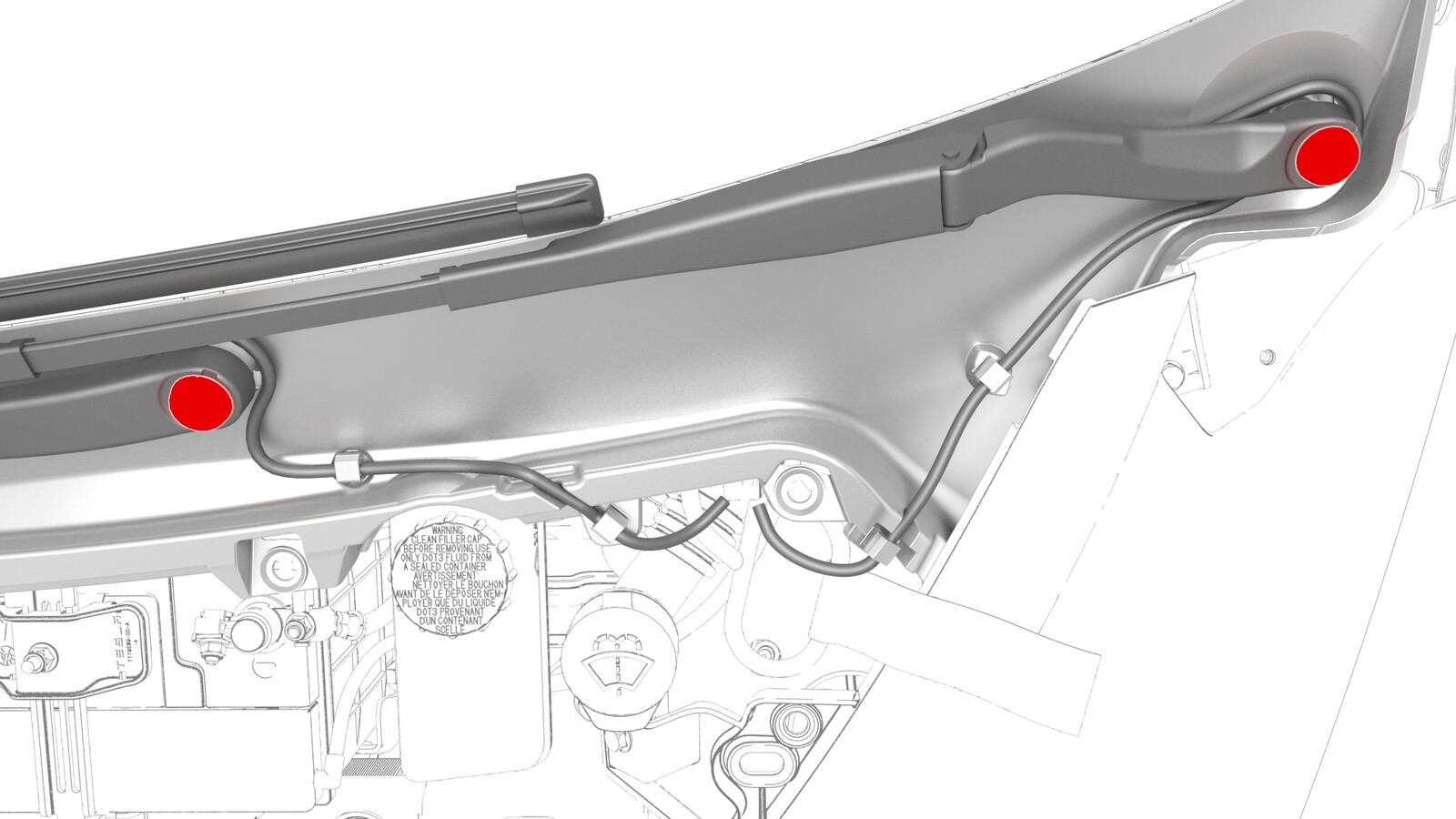- 松开将 LH 和 RH 雨刮器臂软管固定到车辆的夹子(每个臂 2 个)。