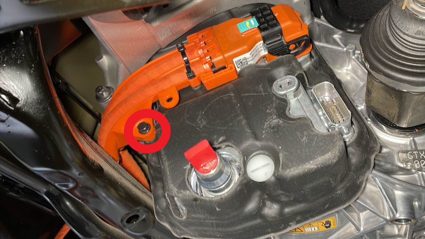 rear drive unit HV harness bracket to the rear drive unit inverter.