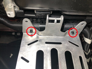 注7 个螺栓,10 毫米,5 Nm;提起 RBN 盖板以操作上部紧固件;新款车可能未配备此盖板