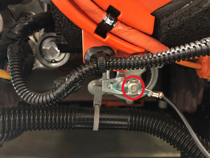 注1 个螺母,10 毫米,6 Nm;确保车辆处于驻车挡,温度控制系统关闭,断开 12V 电池之前车辆未充电