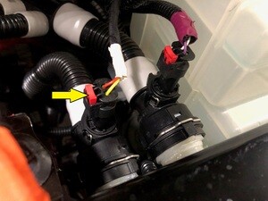 - 将冷却液重新加注软管从冷却液容器上拆下