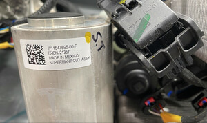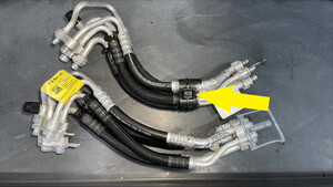 注确定所配备超级歧管的零件号,如果要将 -A 至 -E (v1.0) 替换为 -F (v1.1),则还需要进行歧管配置更改和空调盘管更换