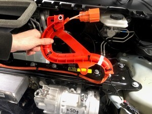 注每次使用前检查手套是否损坏;请参阅服务文档 TN-15-92-003 R5,了解有关检查高压手套的信息:https://service.tesla.com/docs/ServiceBulletins/External/TN/TN-15-92-003_High_Voltage_Awareness_Care_Points_R5.pdf