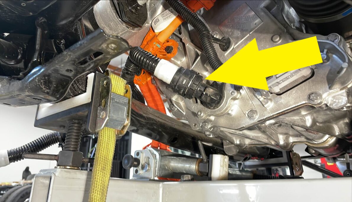 - 从后副车架上拆下后驱动单元高压线束。