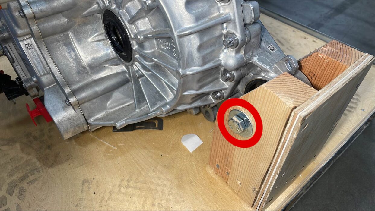 - 将后驱动单元接地带安装到后驱动单元上,然后安装将接地带固定到驱动单元的螺栓。