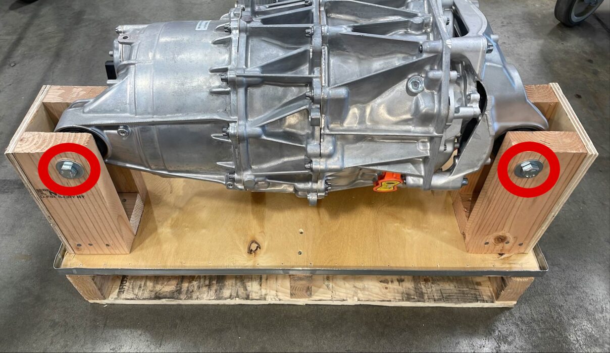- 使用油性记号笔在左后和右后副车架安装螺栓周围描画,以便稍后在安装副车架期间重新对准螺栓。