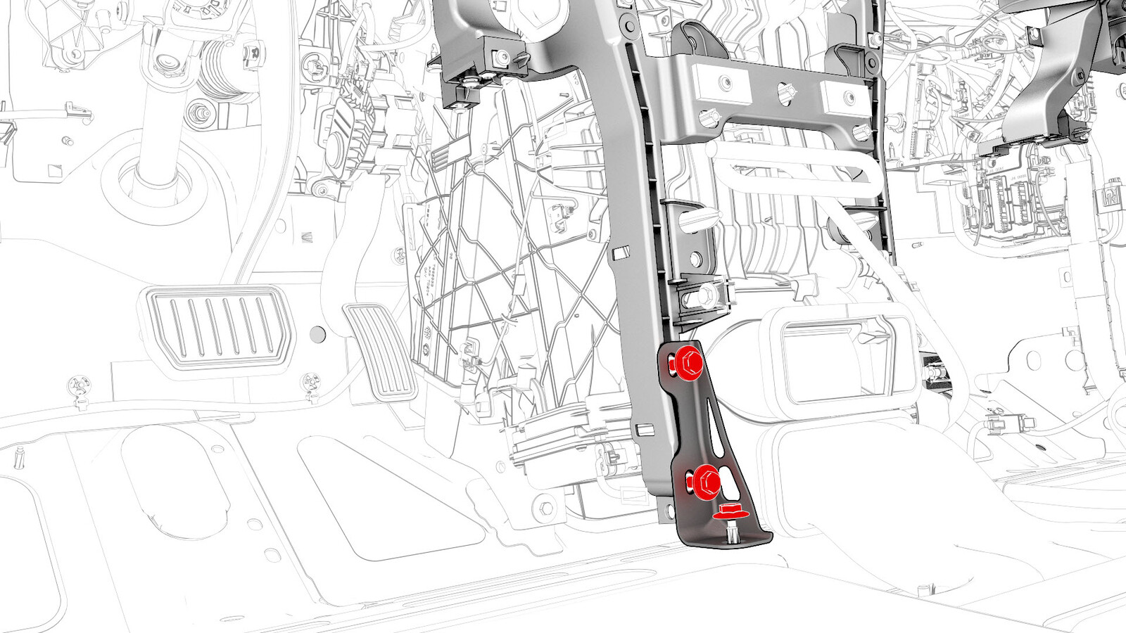 - 拆下并弃用将仪表板线束接地带固定到车身的螺栓(扭矩为 8 Nm)。