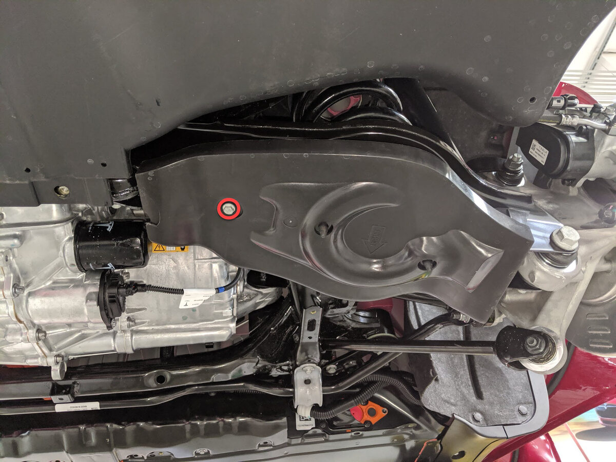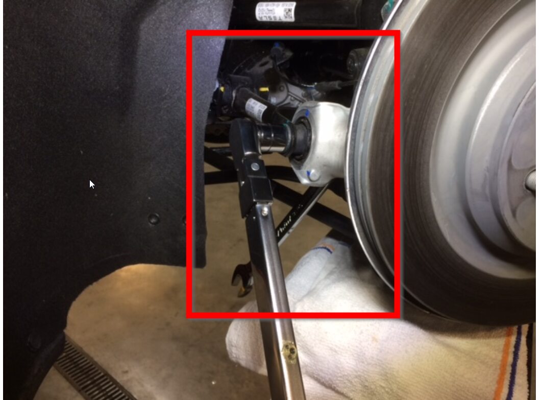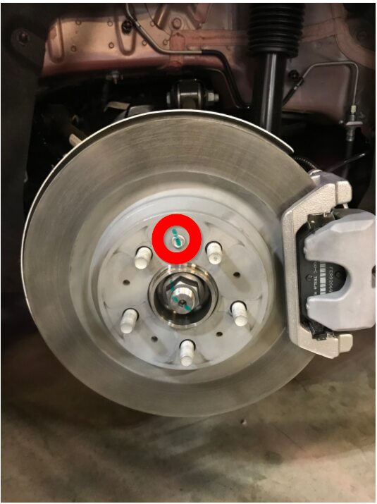Measure from bottom of quarter panel to center of axle as a secondary check to make sure RH suspension is set to ride height