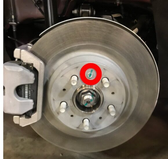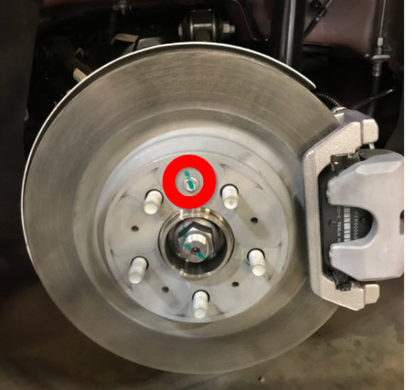 注1x bolt, 10mm, 5 Nm, Remove lug nut previously installed for early production vehicles