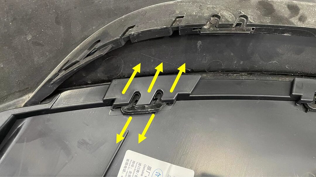 Install rear diffuser to vehicle then engage tabs securing it to fascia