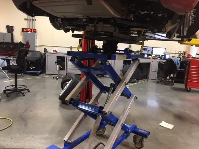 - Position and raise support stand to simulate LH rear suspension at ride height