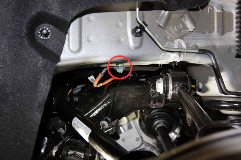 注1x nut, 10mm, 6 Nm, Ensure the vehicle is in park, climate control system is off, and vehicle is not charging before disconnecting 12V