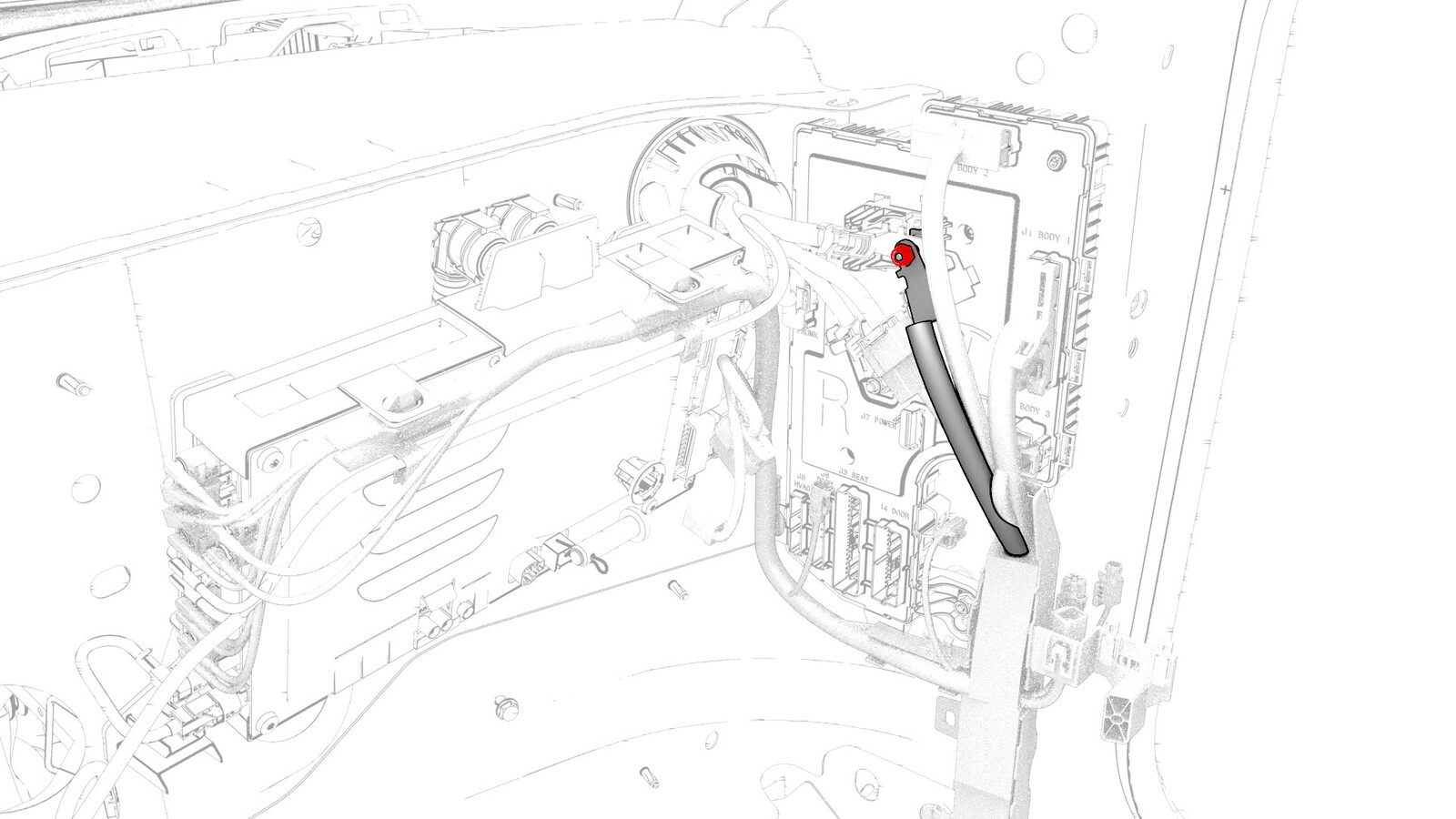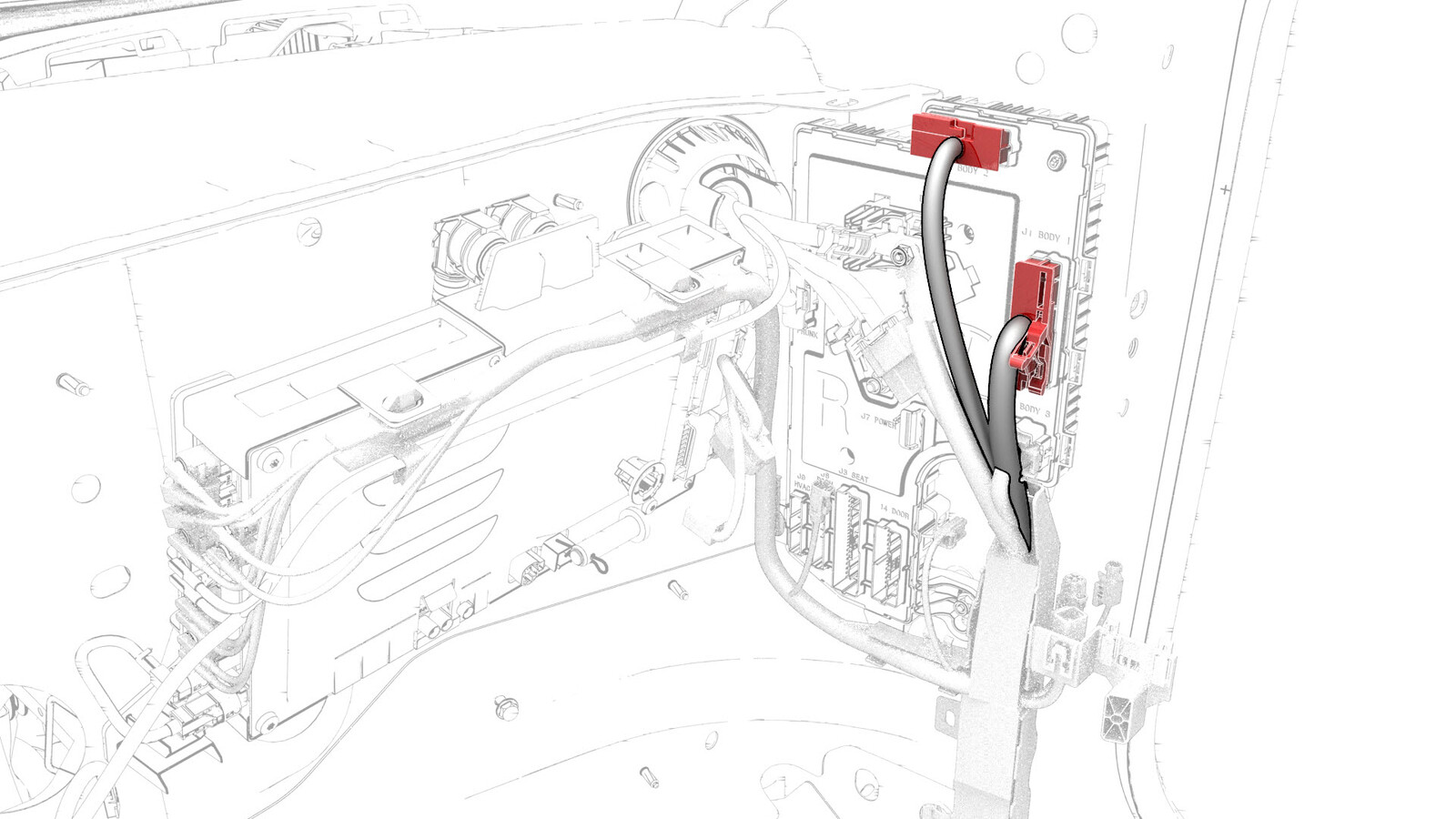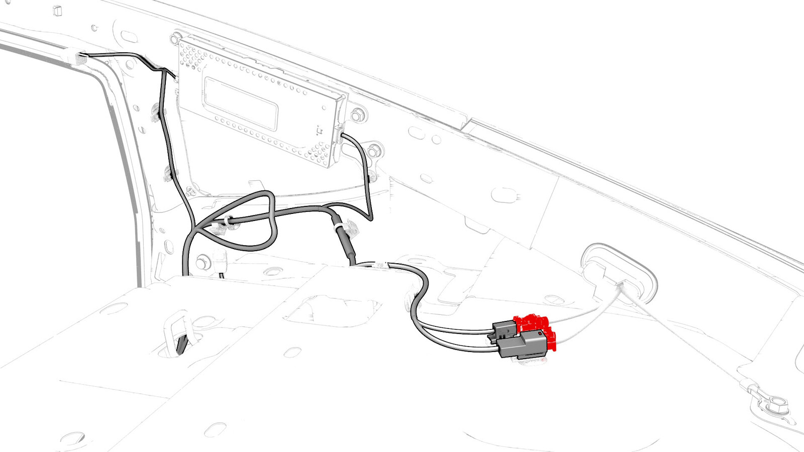 - 将电气线束连接到杂物盘下方的行李箱电气线束连接器。