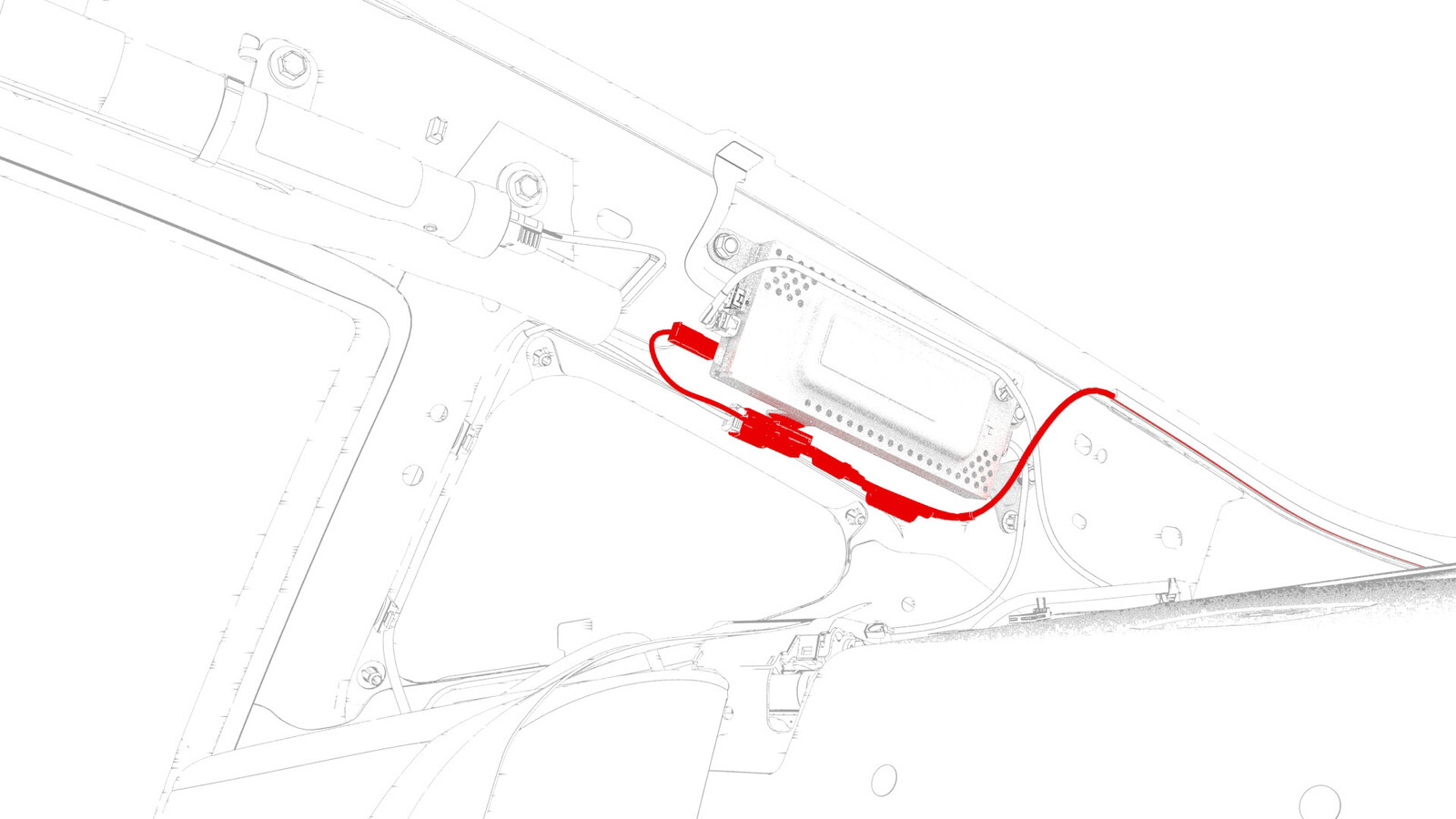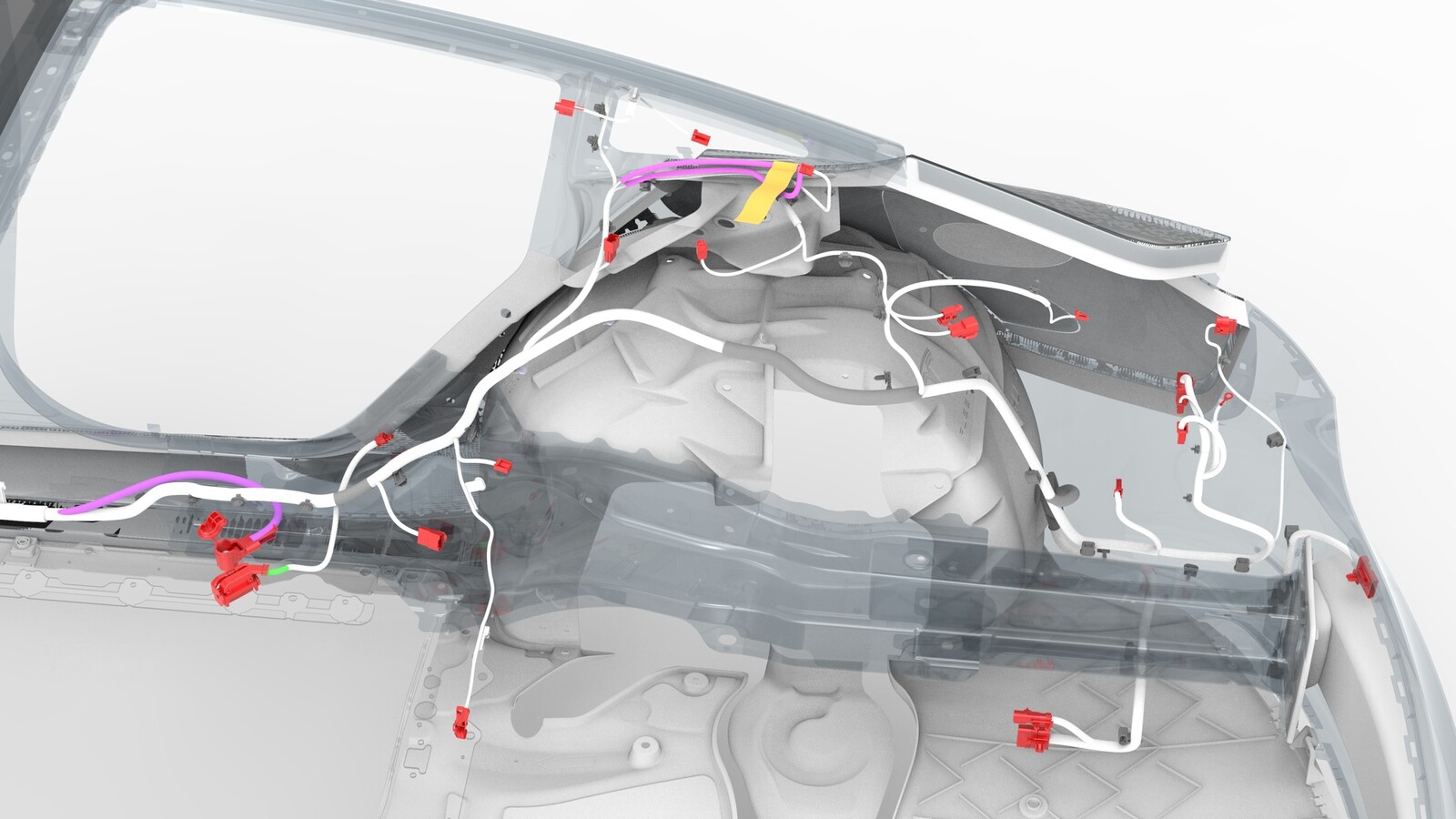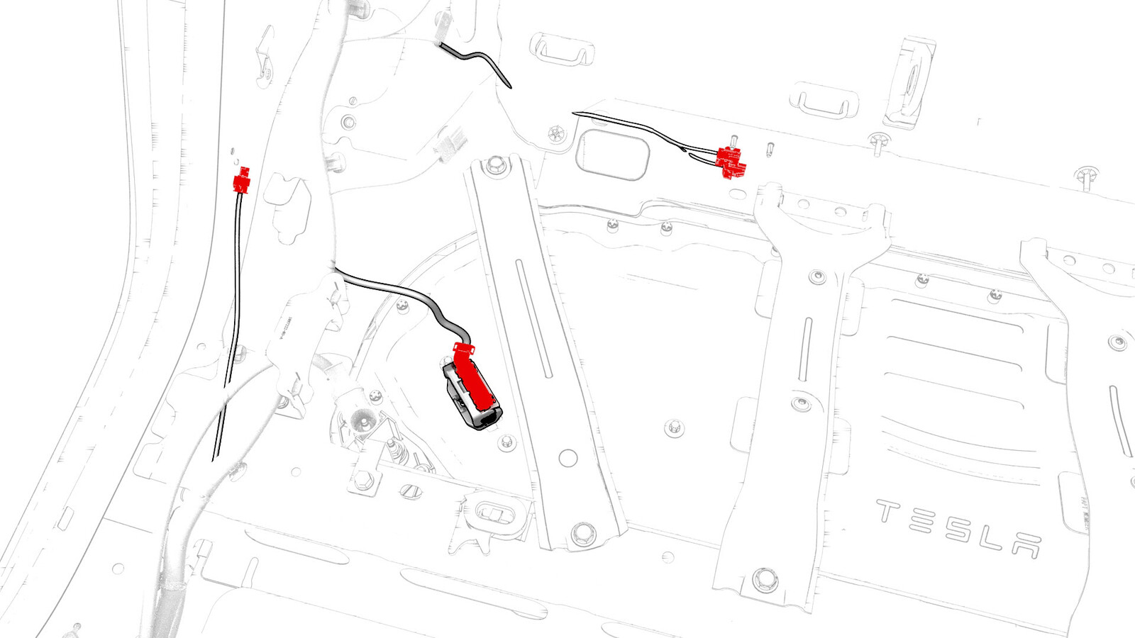 - 将电气线束连接到杂物盘下方的行李箱电气线束连接器。