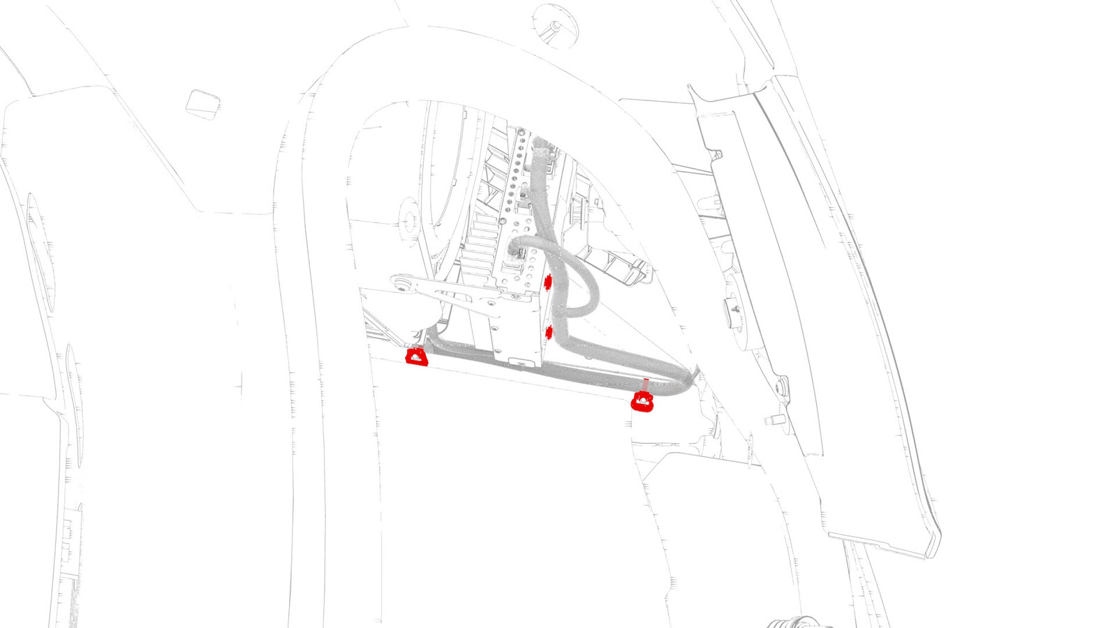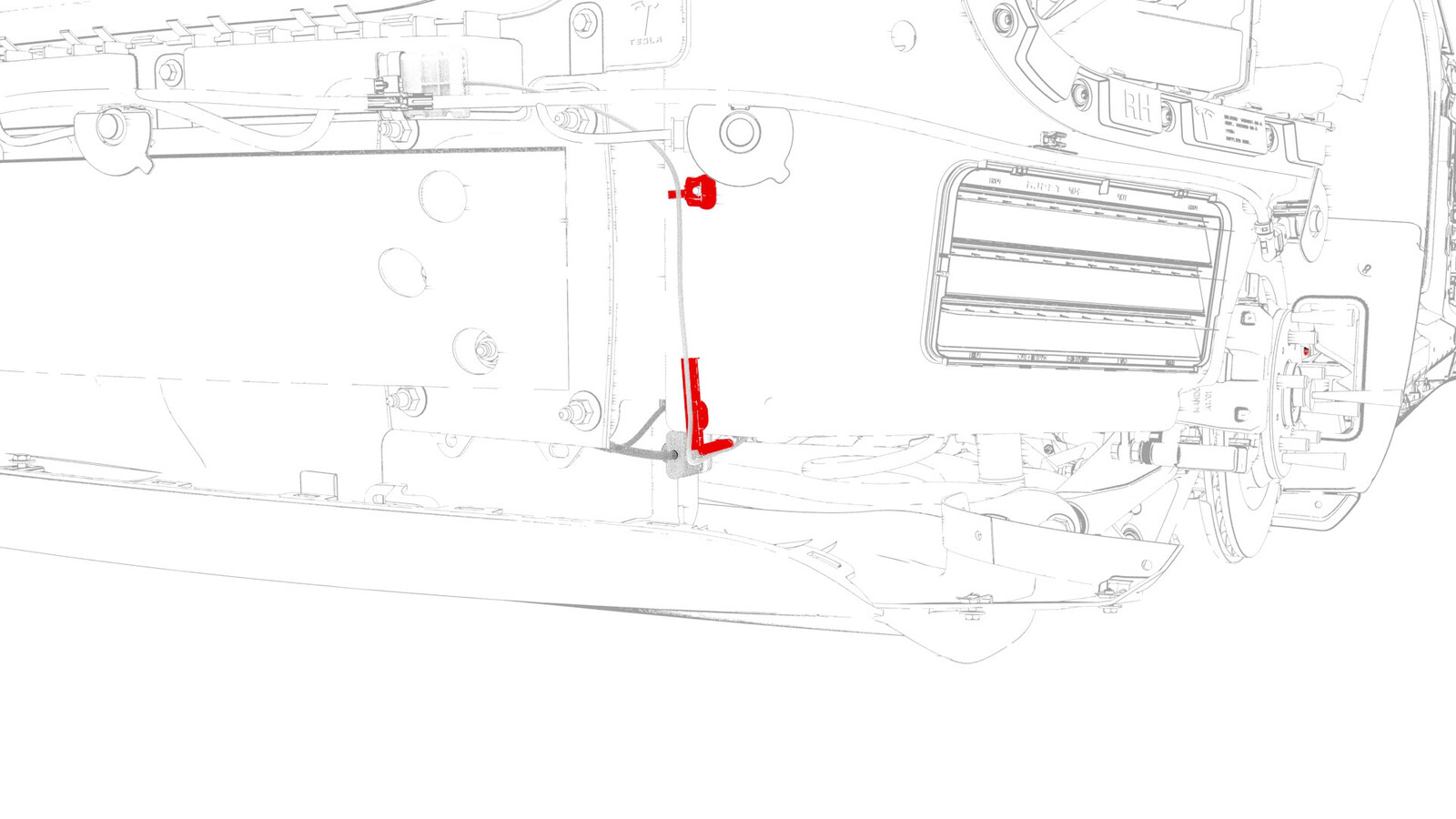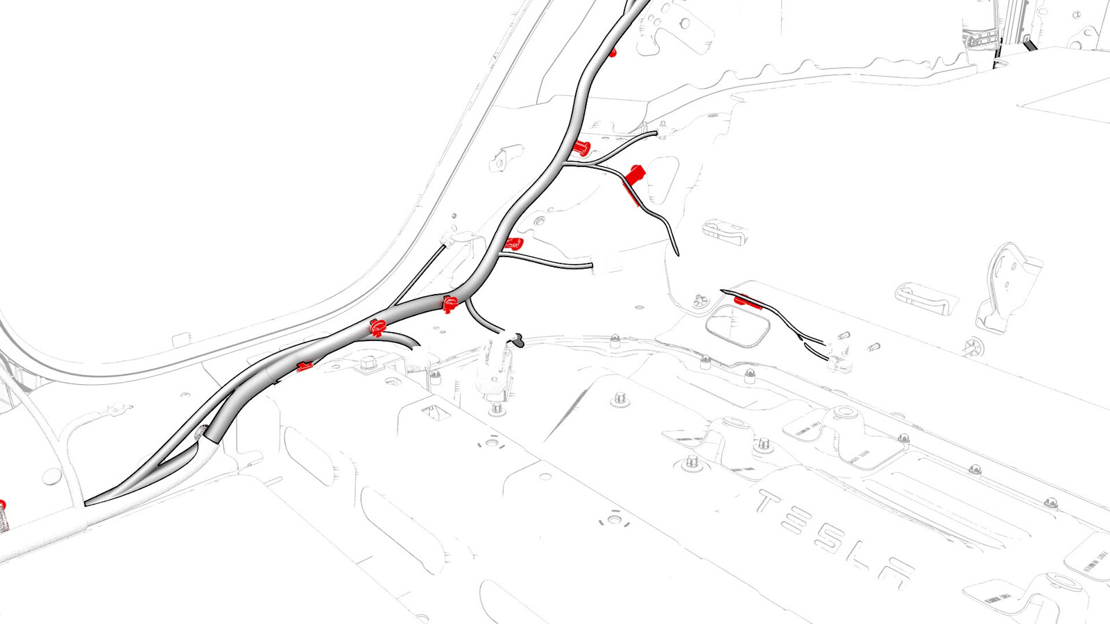 - 在后副框架区域,紧固将电气线束固定到车身的夹子。