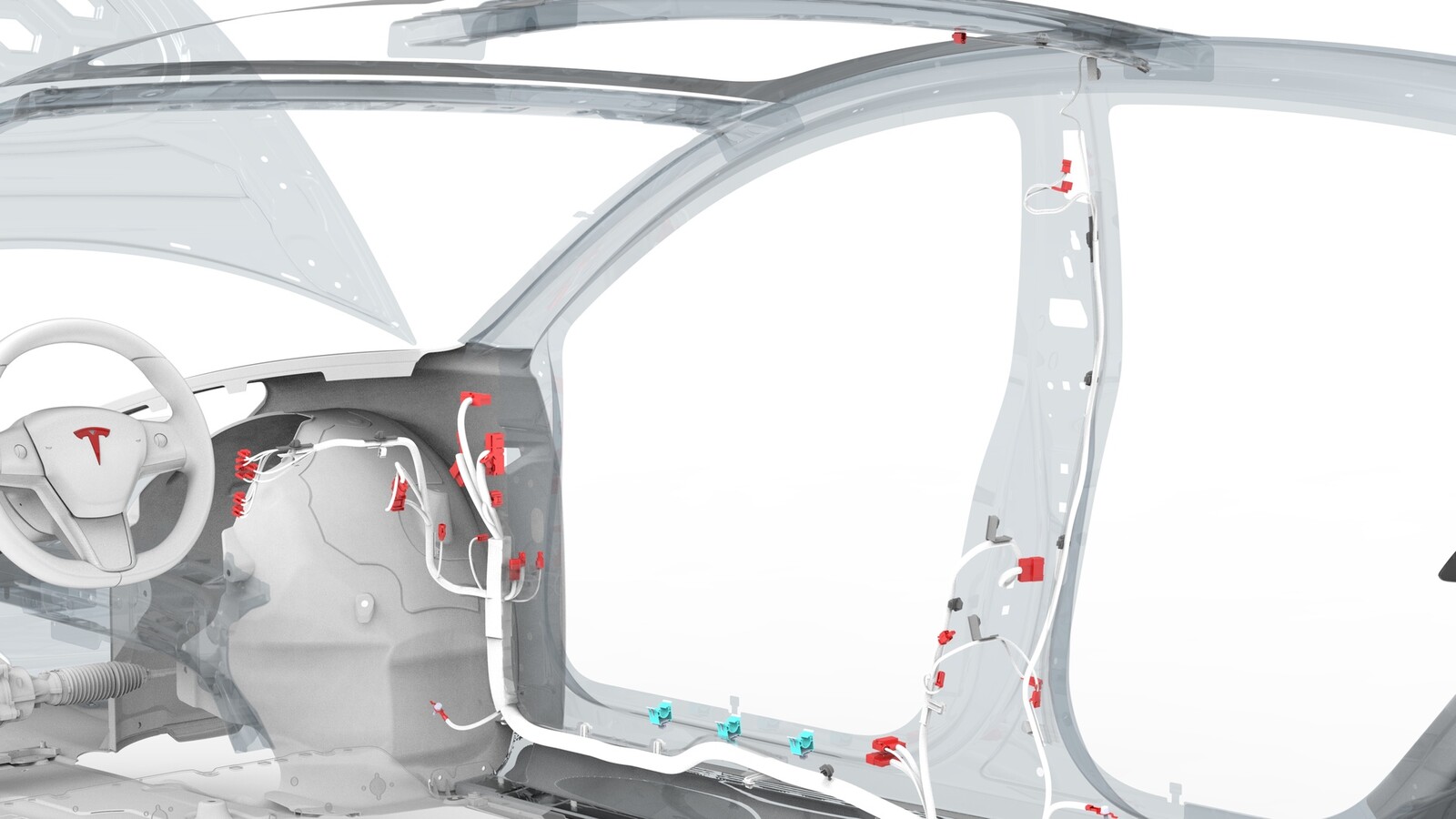 - 将电气线束连接到 C 柱气囊传感器连接器、高压电池控制器连接器和后座椅安全带锁扣连接器。
