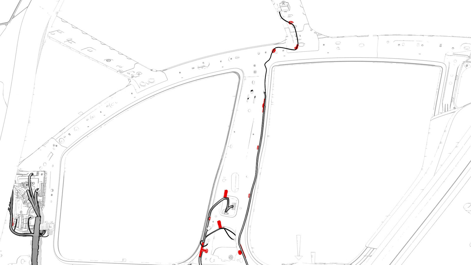 - 在 A 柱和 B 柱区域,松开将电气线束固定到车身的夹子。