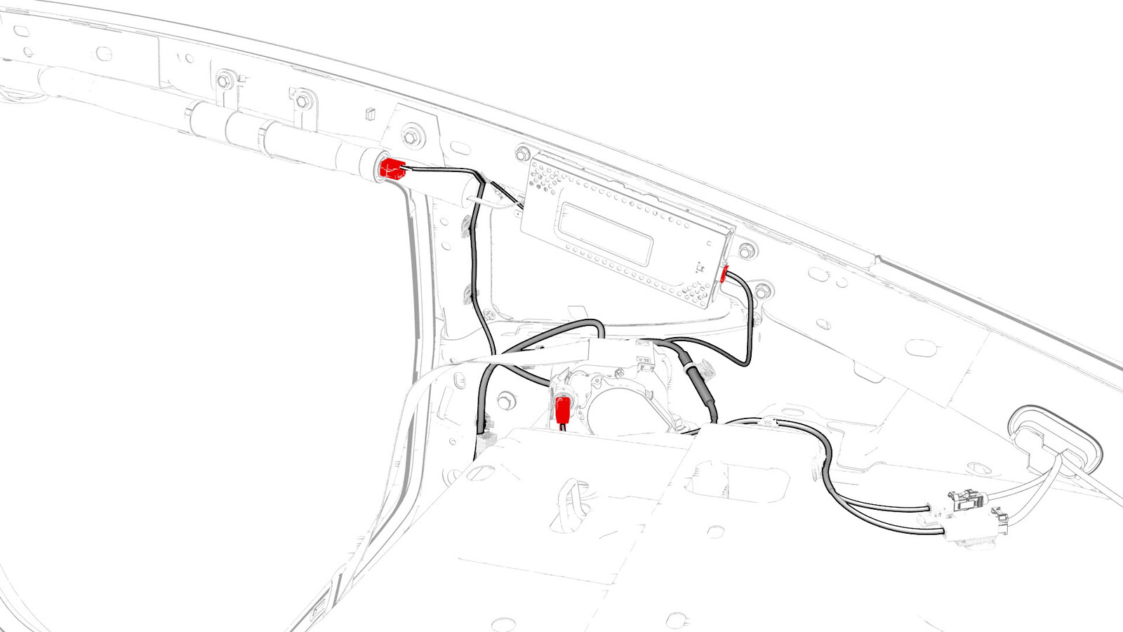 - 在行李箱区域的 RH 侧,松开将电气线束固定到车身的夹子。