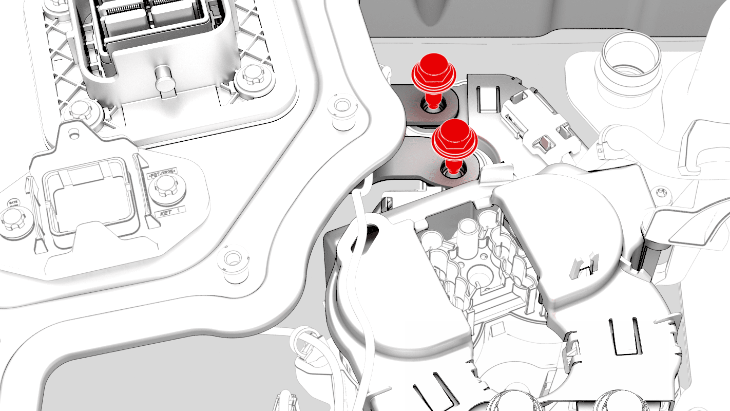 - 拆卸将直流输入总成固定到高压电池仓的螺栓,然后将直流输入总成从车辆上拆下。