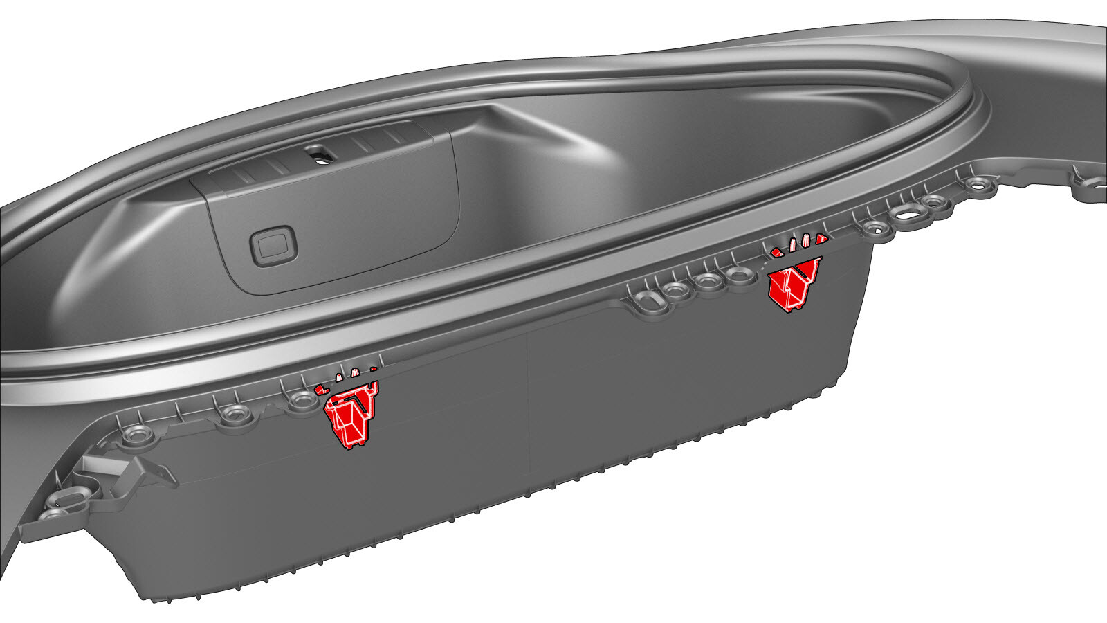 - 拆下固定到前备箱储物单元后部的加固夹 (x2)。