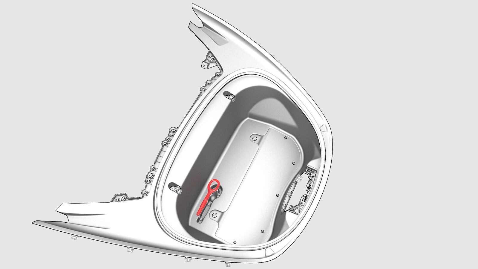 - 将拖钩安装到前备箱储物单元中。