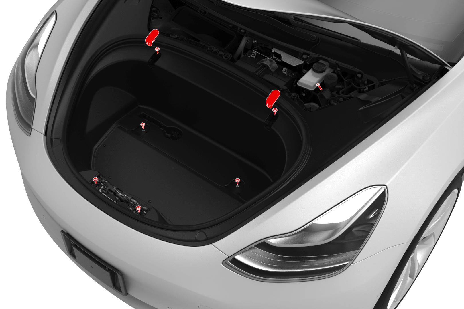 - 如果要安装相同的前备箱储物单元,请跳至第 4 步。如果要安装新的前备箱储物单元,请继续执行下一步。