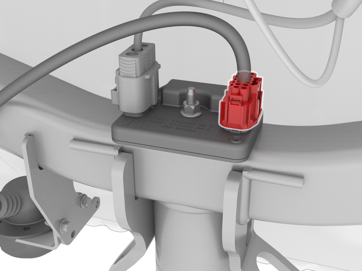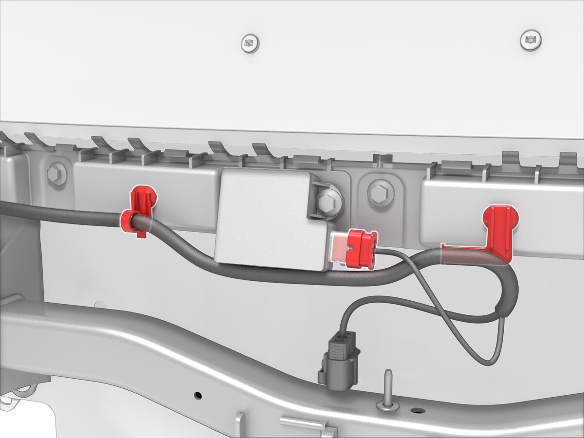 将拖车跳线线束穿过支架,然后连接到拖车挂钩电子控制单元。