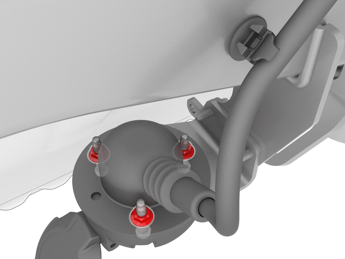 将拖车挂钩安装到车辆上,然后固定 LH 和 RH 紧固件。