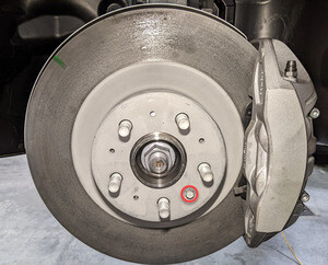 | Bolt that attaches the front rotor to the knuckle |