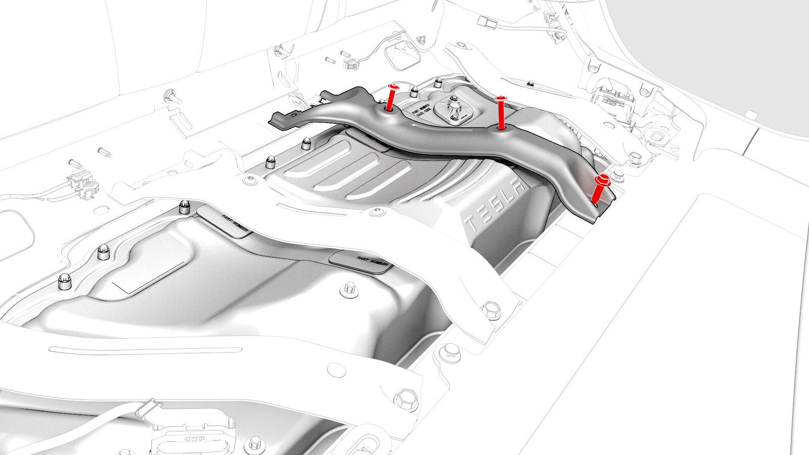 - 拆卸将第二排左侧内侧滑轨固定到高压电池仓盖板和车身的螺栓,然后从车辆上拆下滑轨。