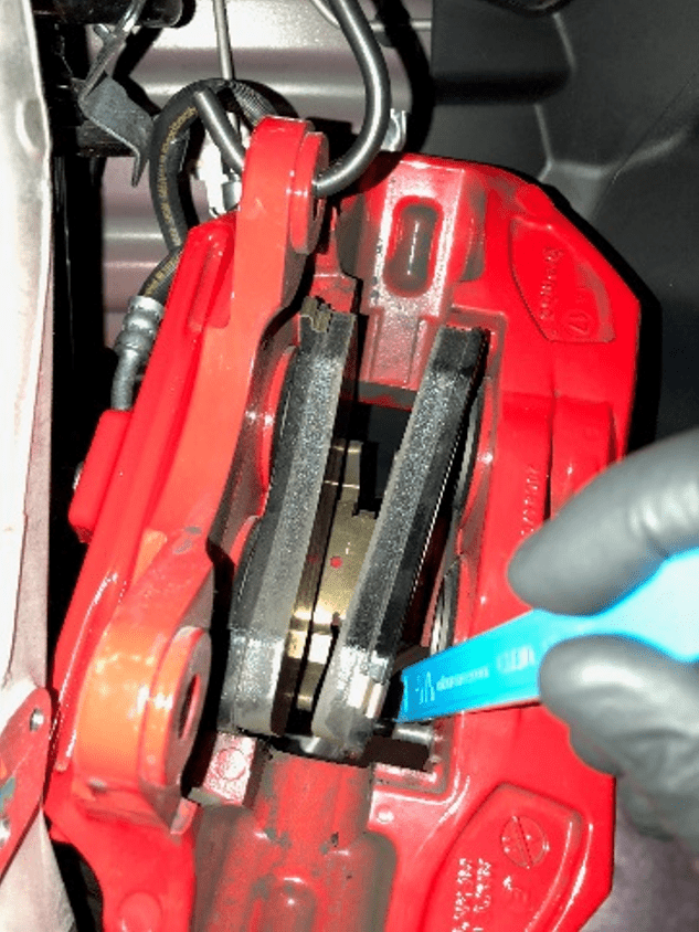 - 使用制动钳扩张器展开制动片,将活塞压回到左前制动钳中。